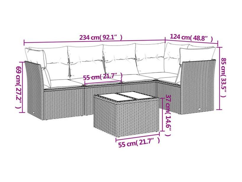 Salon de jardin avec coussins 6 pcs marron résine tressée
