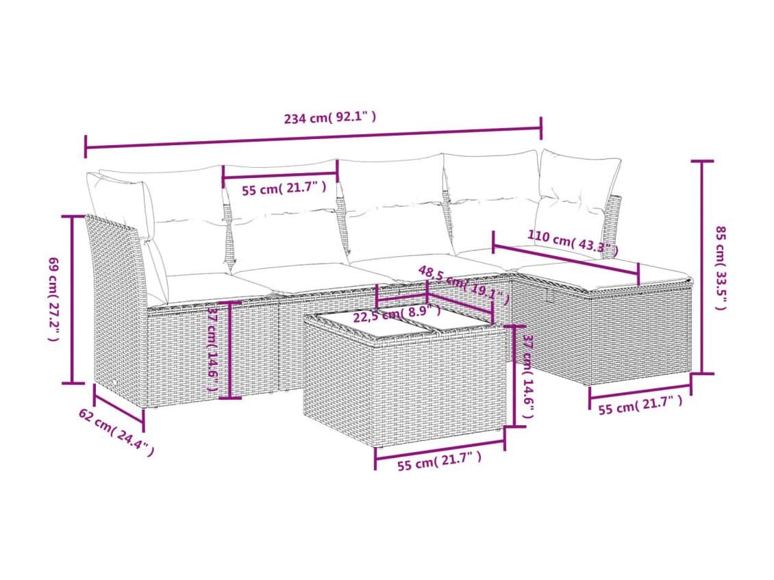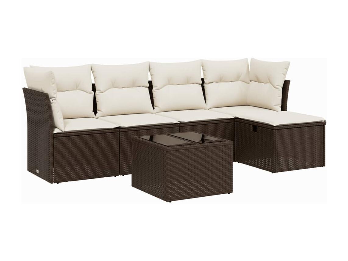 Salon de jardin avec coussins 6 pièces marron résine tressée