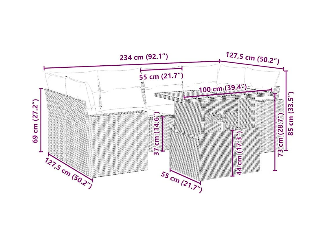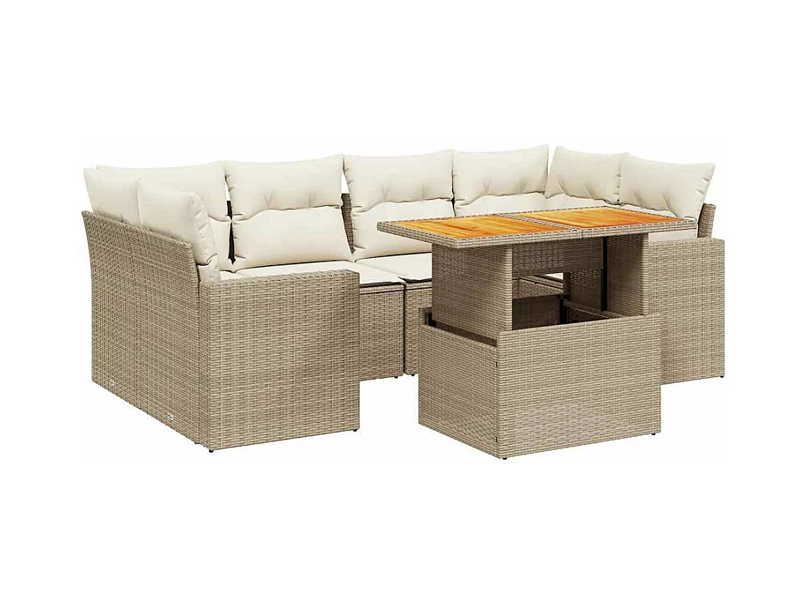 Salon de jardin avec coussins 7 pcs beige résine tressée