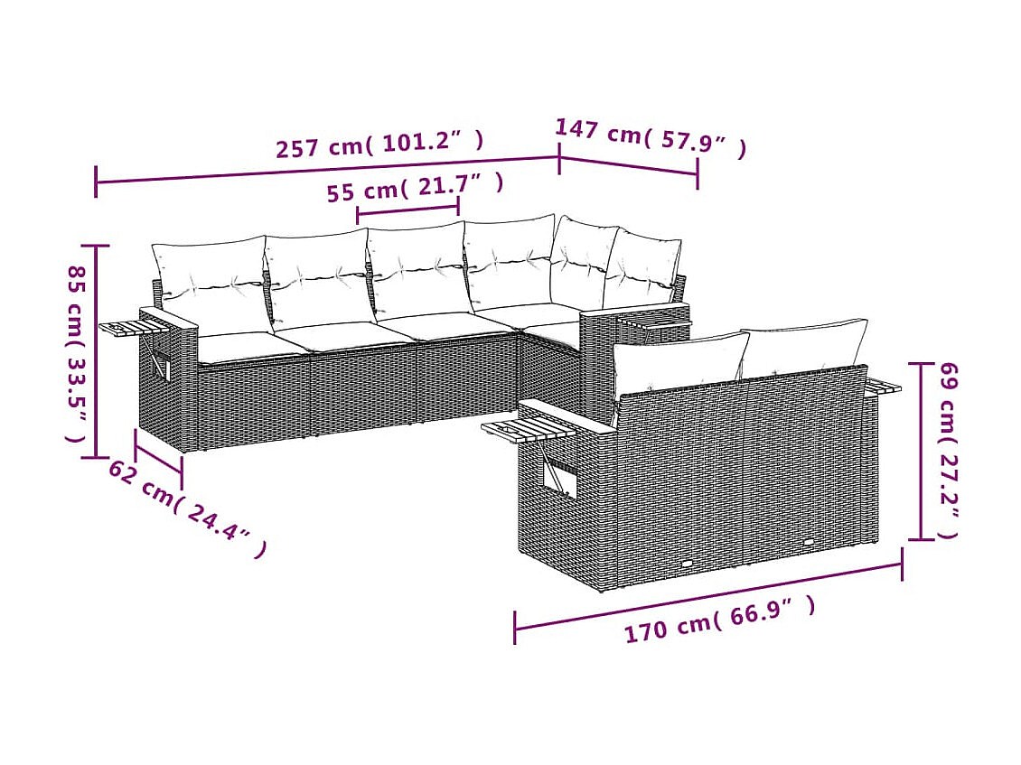 Salon de jardin avec coussins 7 pcs beige résine tressée