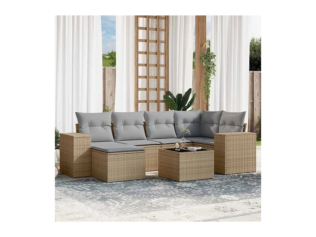 Salon de jardin avec coussins 7 pcs beige résine tressée