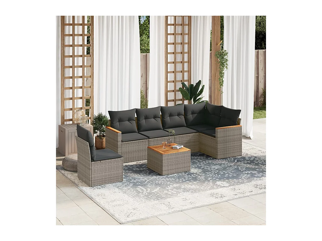 Salon de jardin avec coussins 7 pcs gris résine tressée
