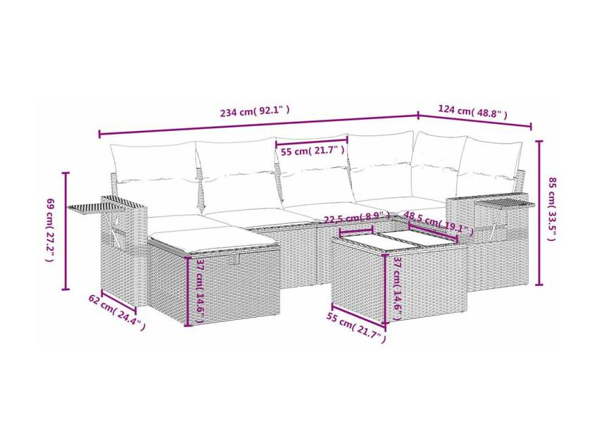 Salon de jardin avec coussins 7 pcs marron résine tressée