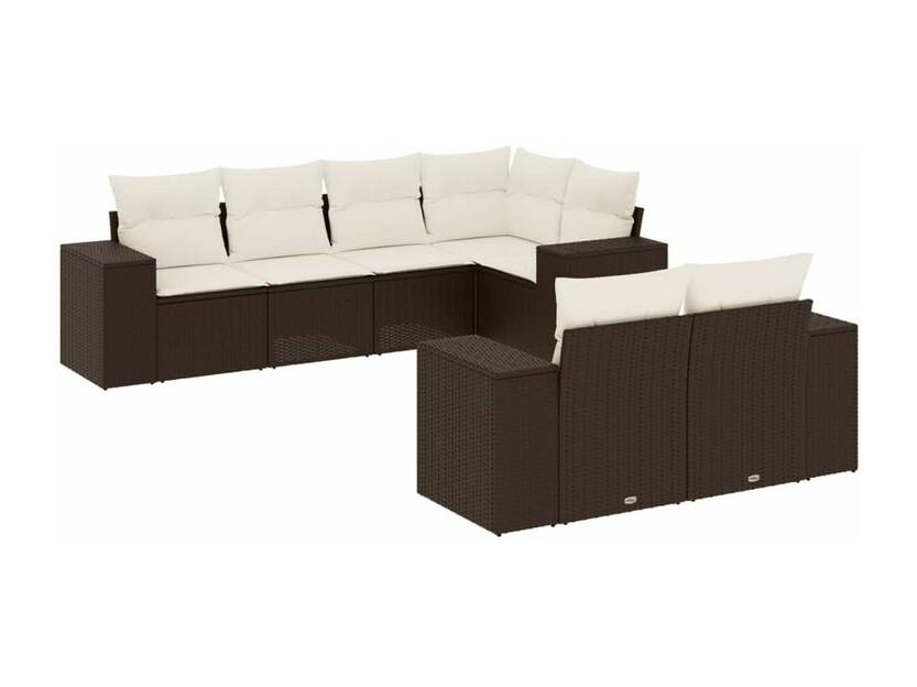 Salon de jardin avec coussins 7 pcs marron résine tressée