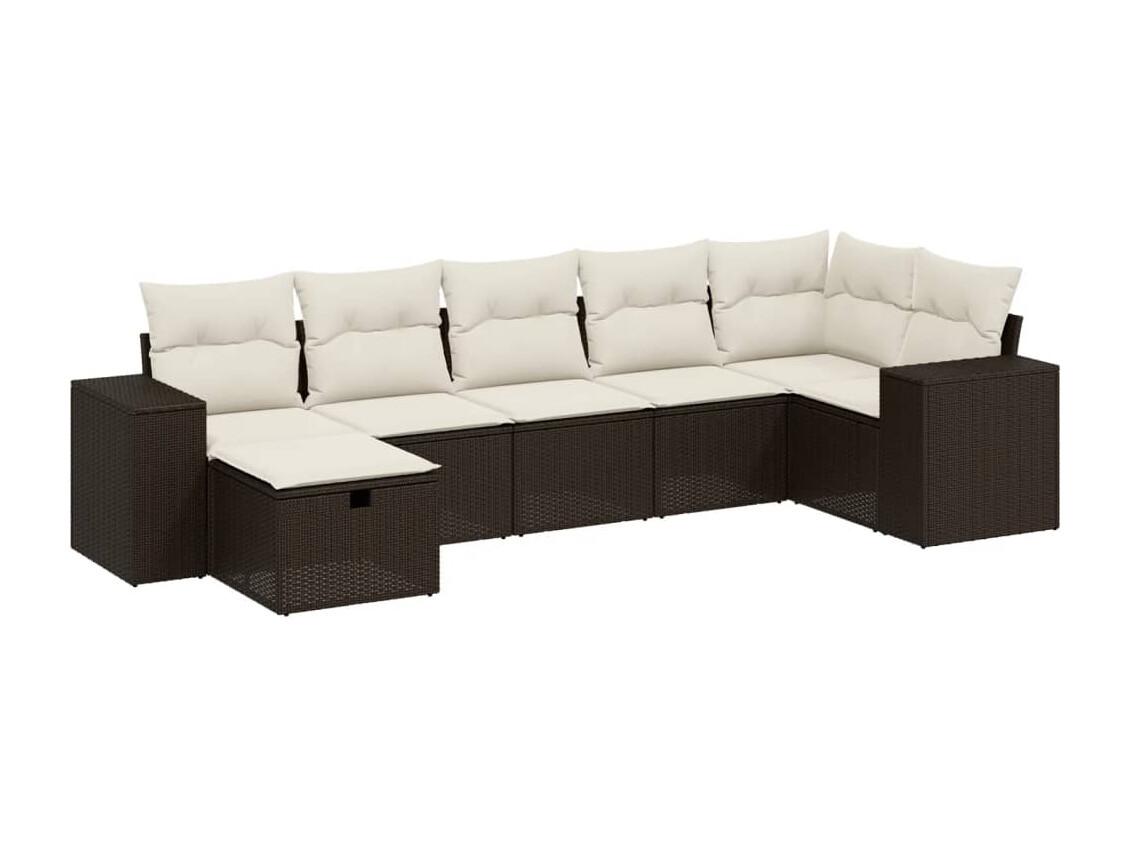 Salon de jardin avec coussins 7 pièces marron résine tressée