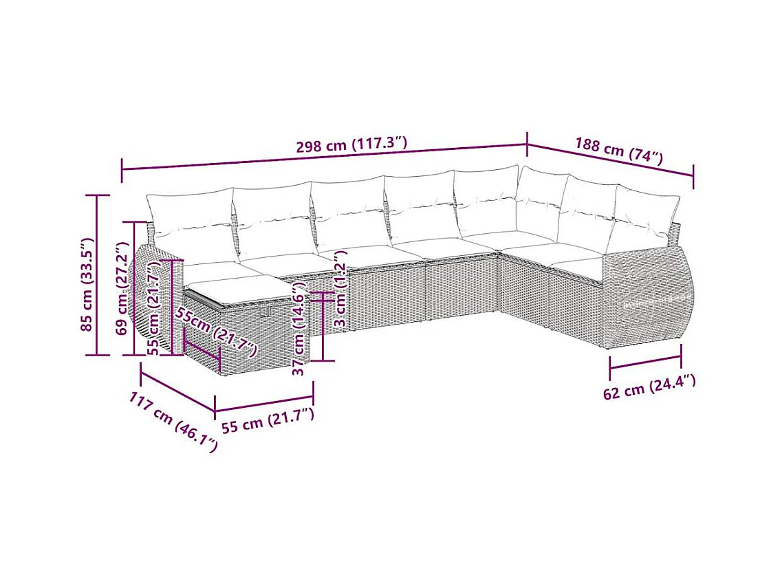 Salon de jardin avec coussins 8 pcs beige résine tressée
