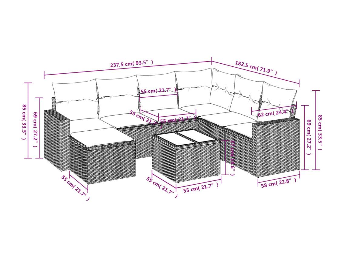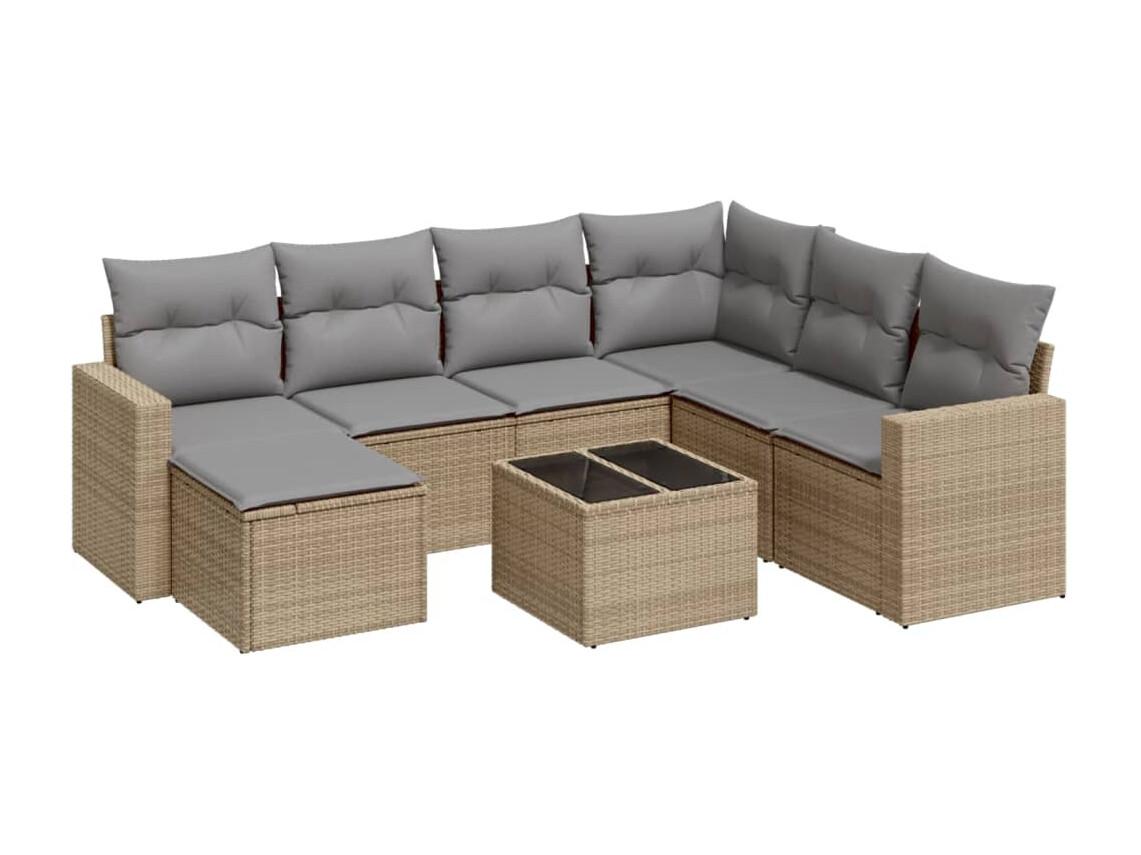 Salon de jardin avec coussins 8 pcs beige résine tressée