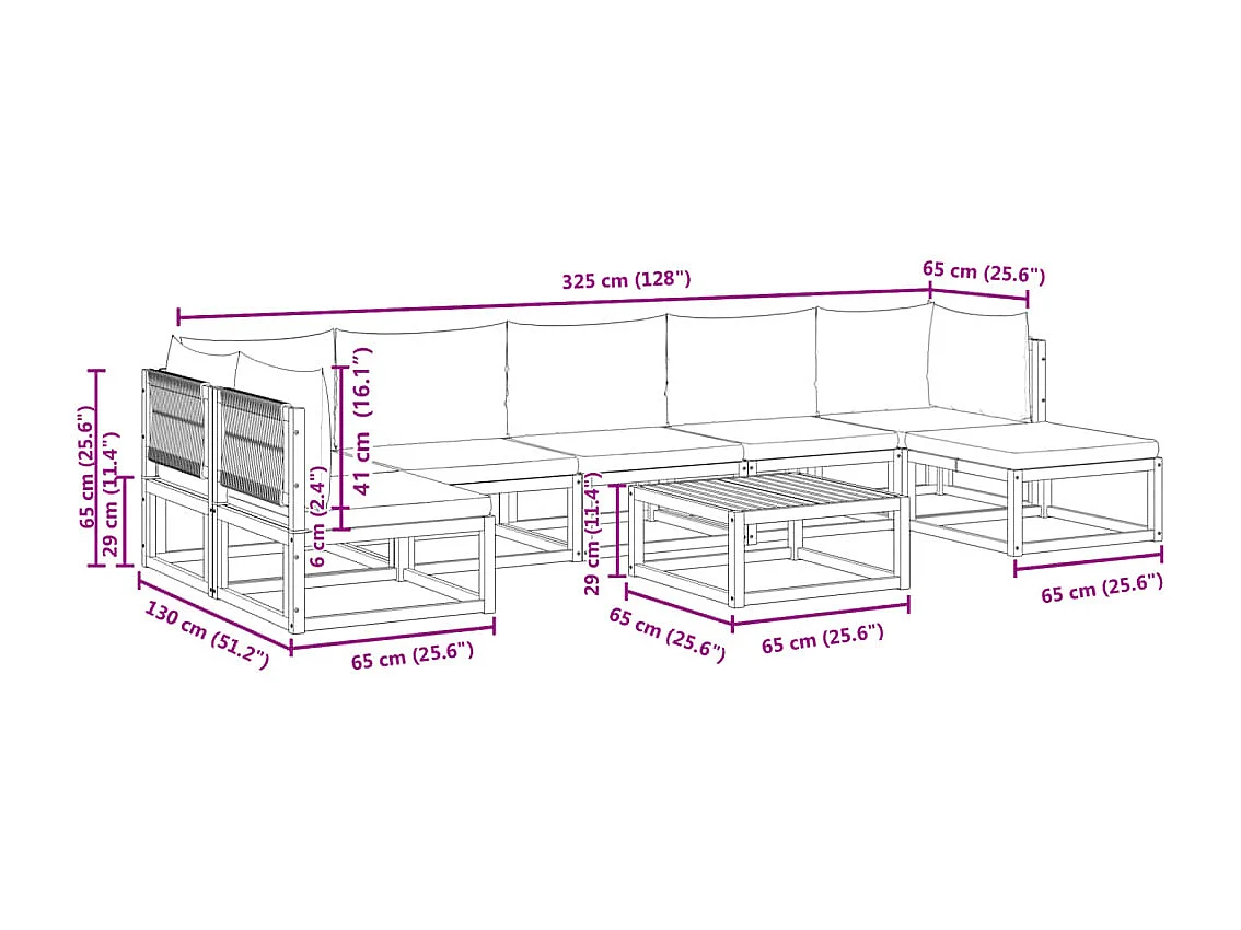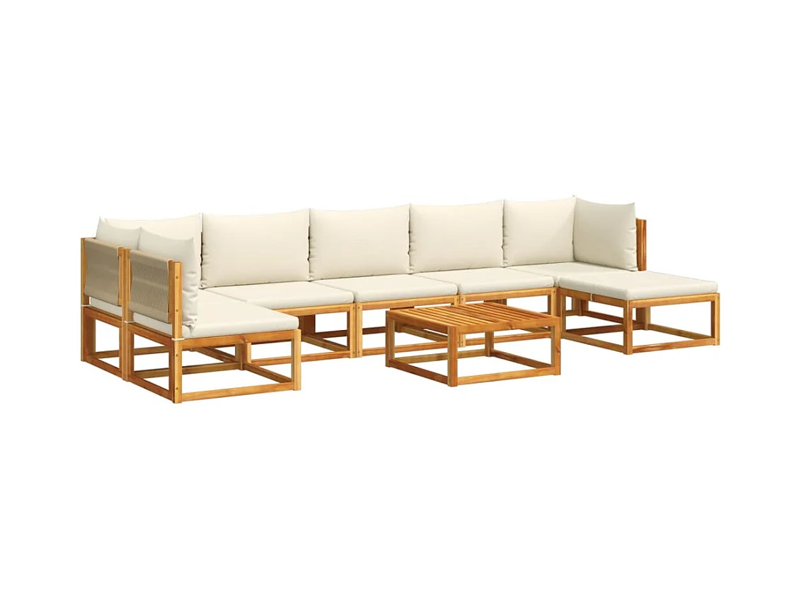 Ensemble de canapés de jardin 8 pièces avec coussins en bois d'acacia et corde