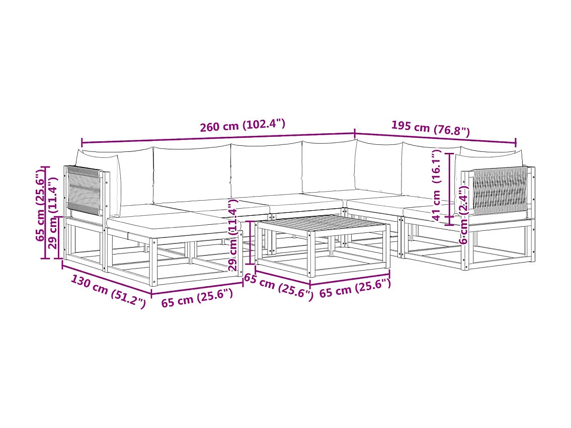 Ensemble de canapés de jardin 8 pièces avec coussins en bois d'acacia et corde