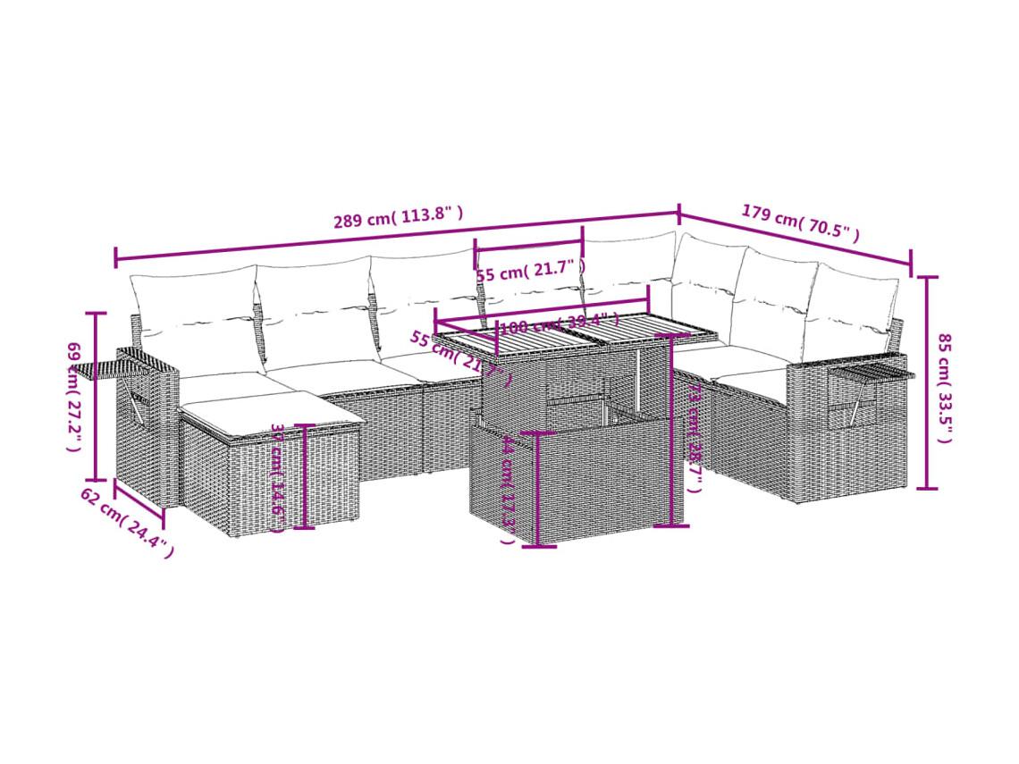 Salon de jardin avec coussins 9 pcs beige résine tressée