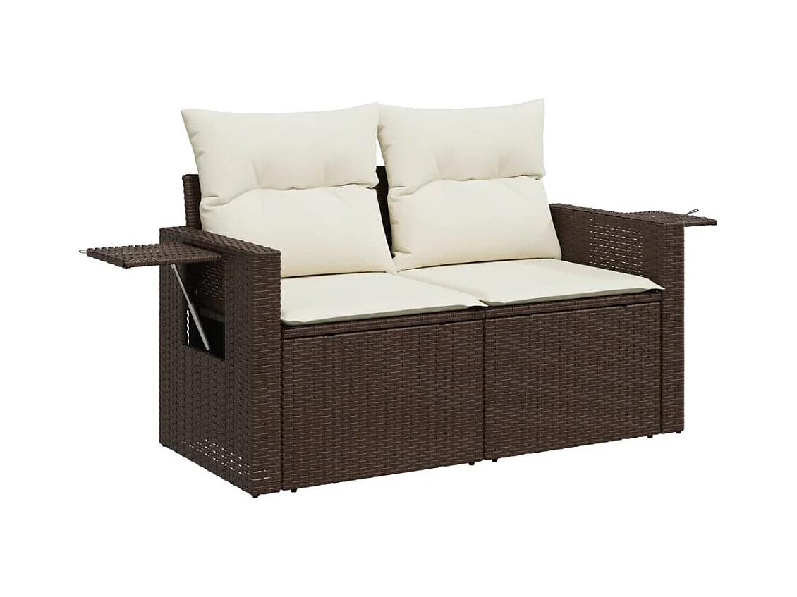 Salon de jardin avec coussins 9 pcs marron résine tressée