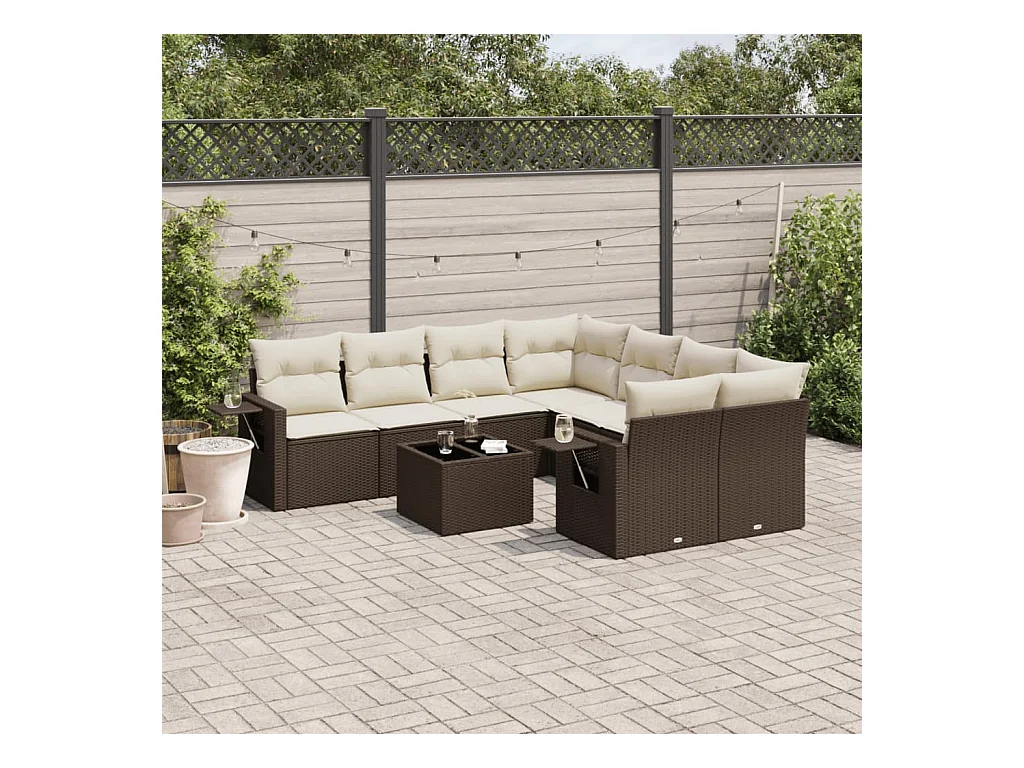 Salon de jardin avec coussins 9 pcs marron résine tressée