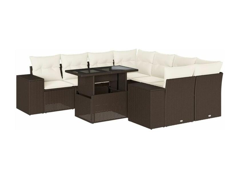 Salon de jardin avec coussins 9 pcs marron résine tressée
