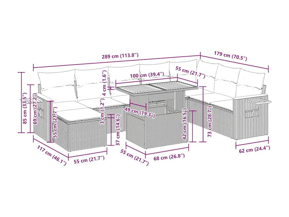 Salon de jardin avec coussins 9 pcs noir résine tressée acacia