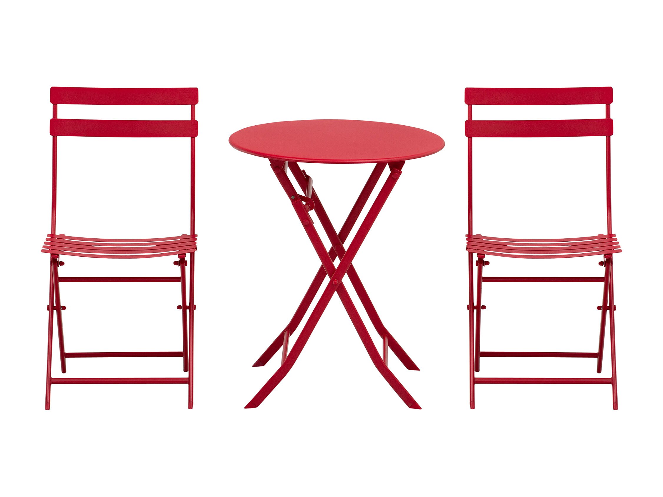 Salon de jardin bistro pliable - table ronde Ø 60 cm avec 2 chaises pliantes - métal thermolaqué rouge