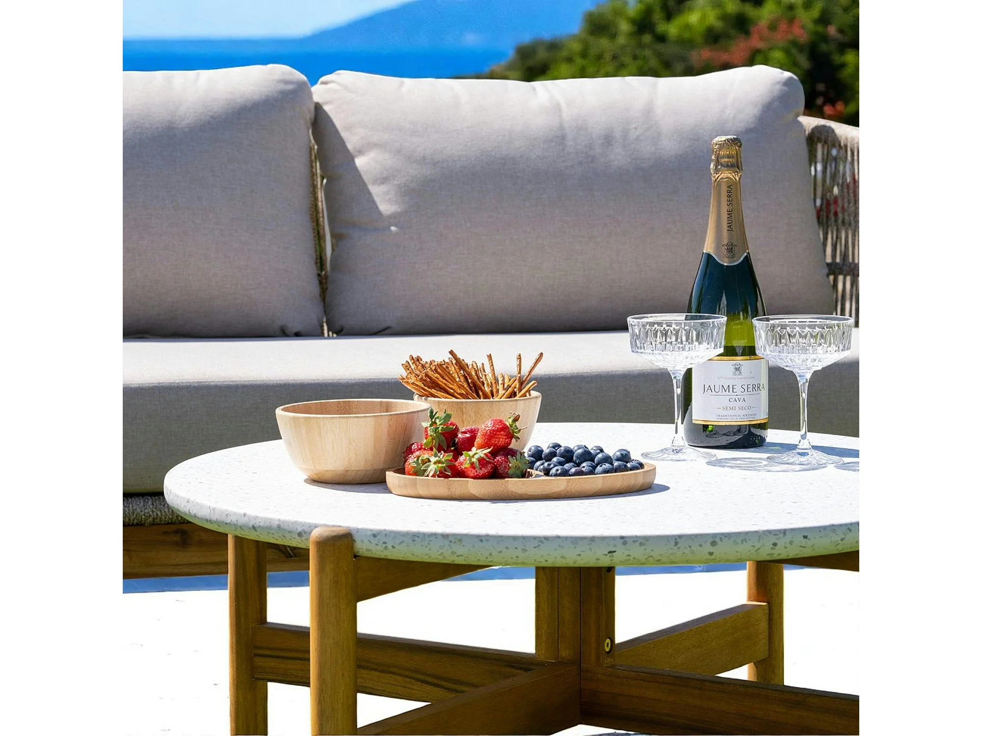 Salon de jardin en bois d'acacia et corde (1 canapé, 2 fauteuils, 1 table basse ronde) MENDOZA