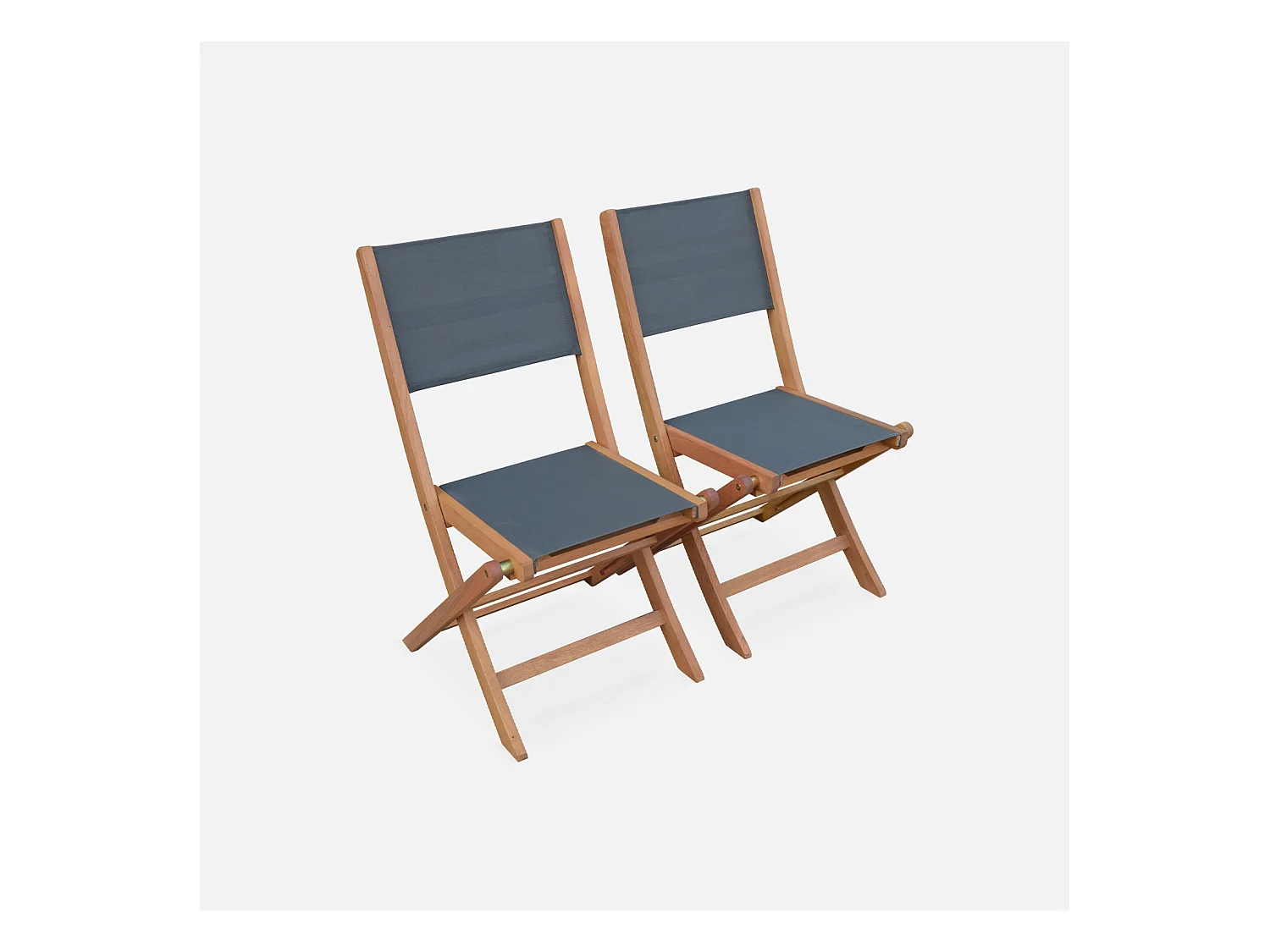 Table de jardin extensible bois d'eucalyptus + 8 assises. en bois d'Eucalyptus huilé et textilène gris anthracite