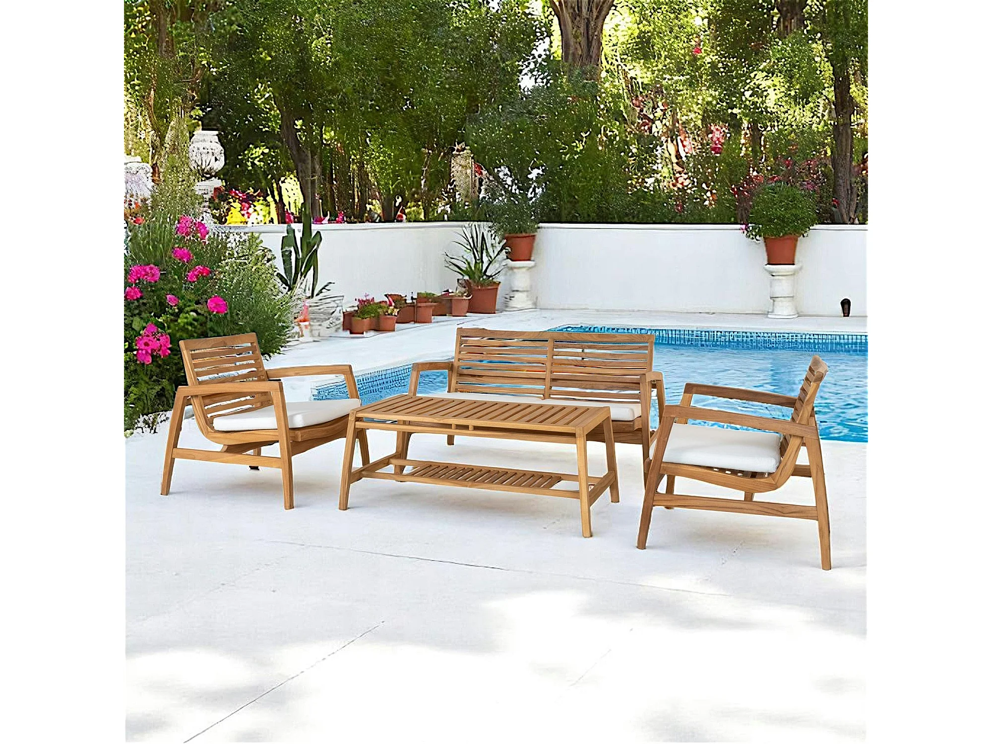 Salon de jardin en teck (1 canapé, 2 fauteuils, 1 table basse) MENDOZA