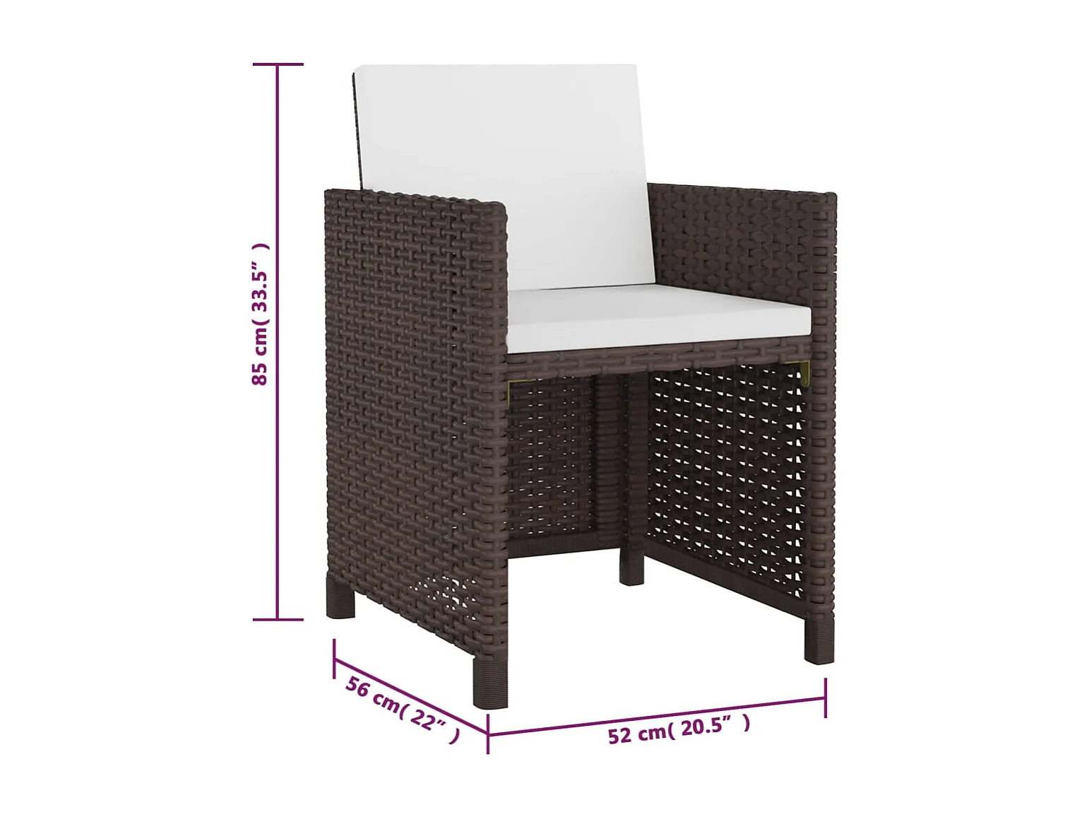Salon de jardin encastrable 5 pièces avec coussins Rotin Marron