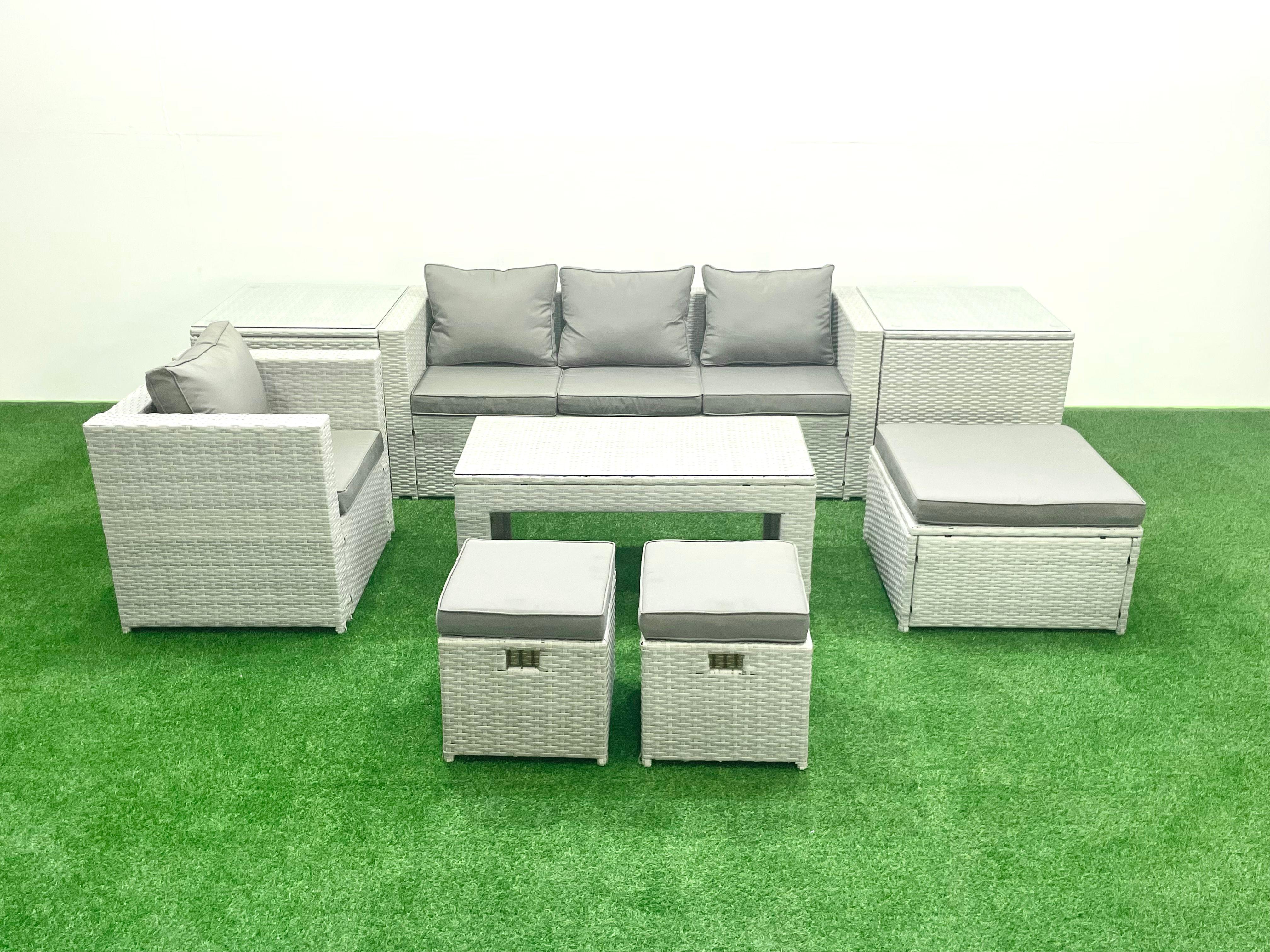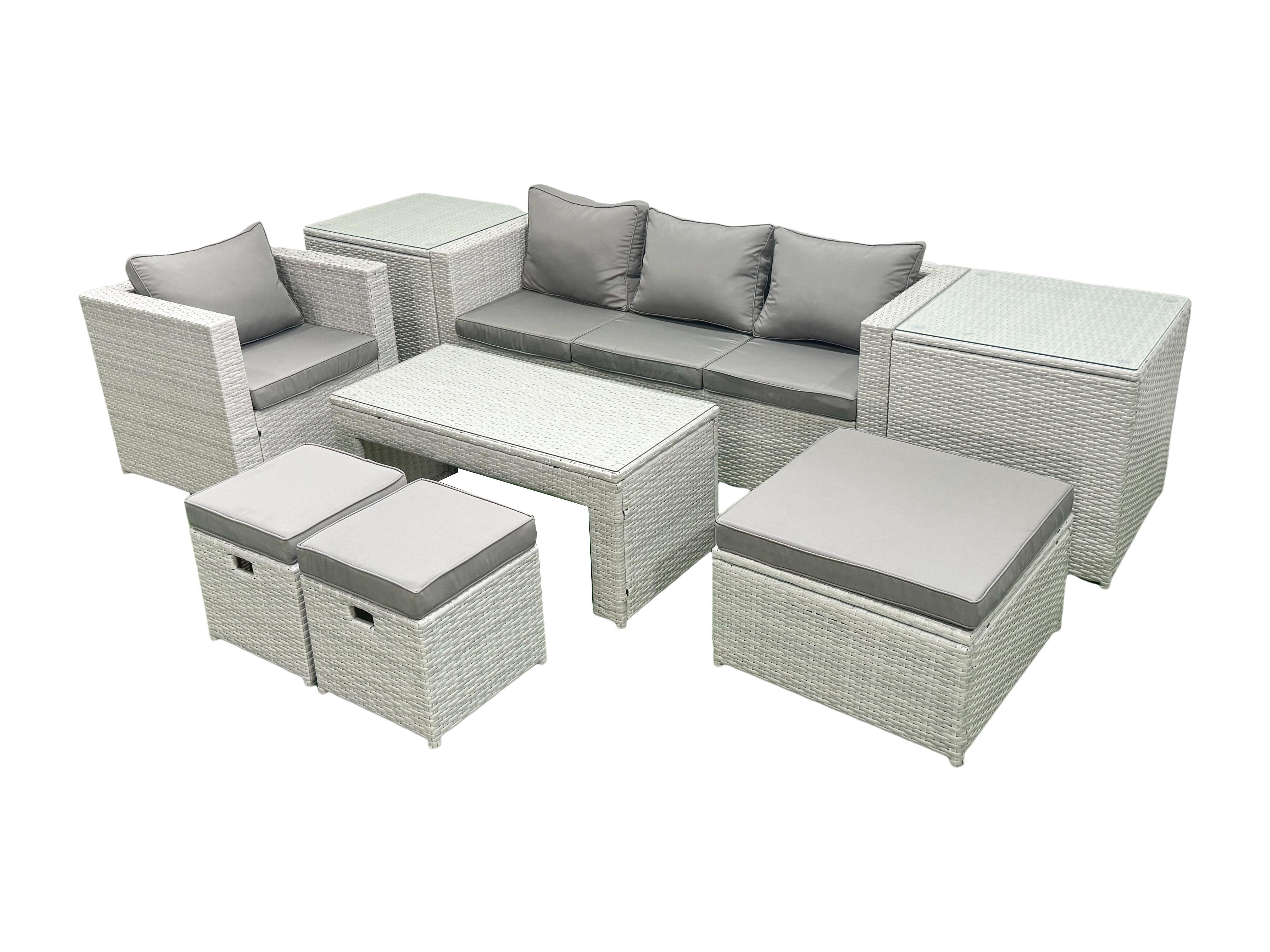 Salon de Jardin Ensemble Ensemble de canapés en rotin avec Table basse 3 Tabourets 2 Tables d'appoint Gris clair mixte 7 places