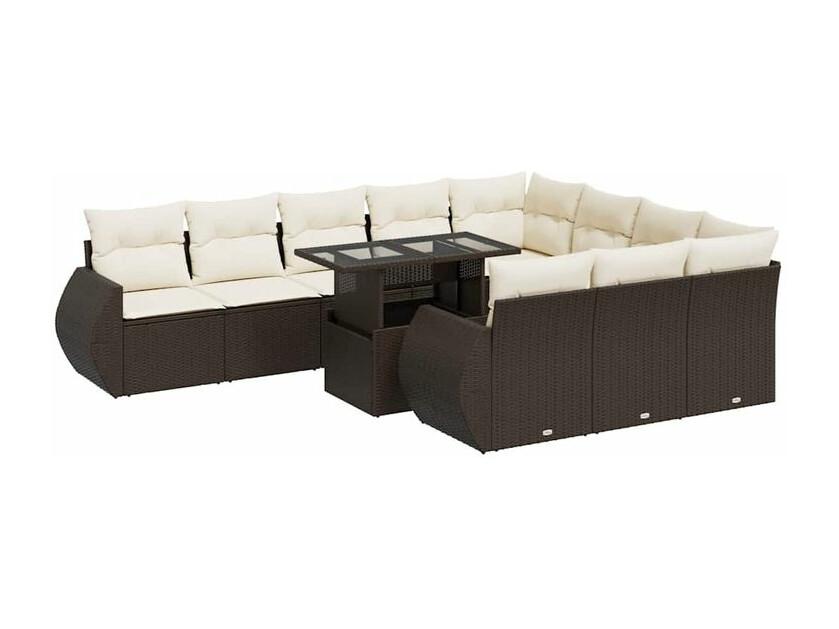 Salon de jardin et coussins 11 pcs marron résine tressée