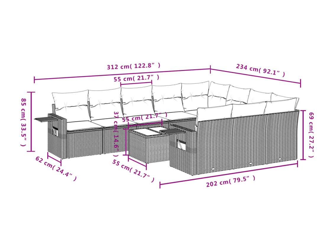Salon de jardin et coussins 11 pièces marron résine tressée