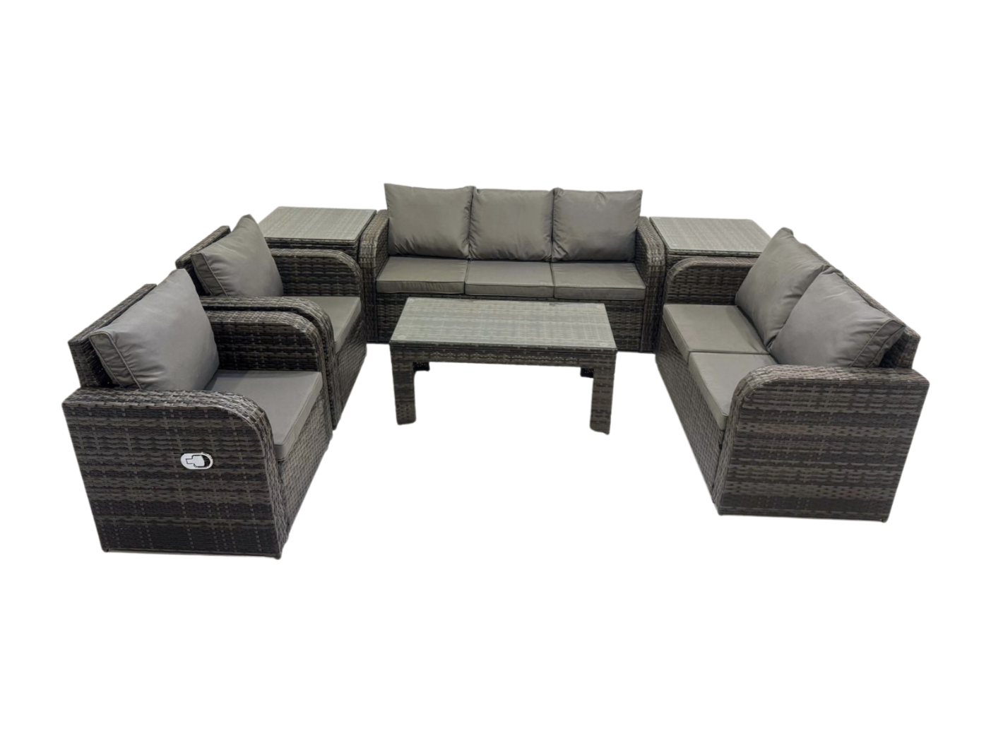 Salon de jardin exterieur Ensemble de canapés en rotin avec Table basse rectangulaire 2 Tables d'appoint Gris foncé mixte