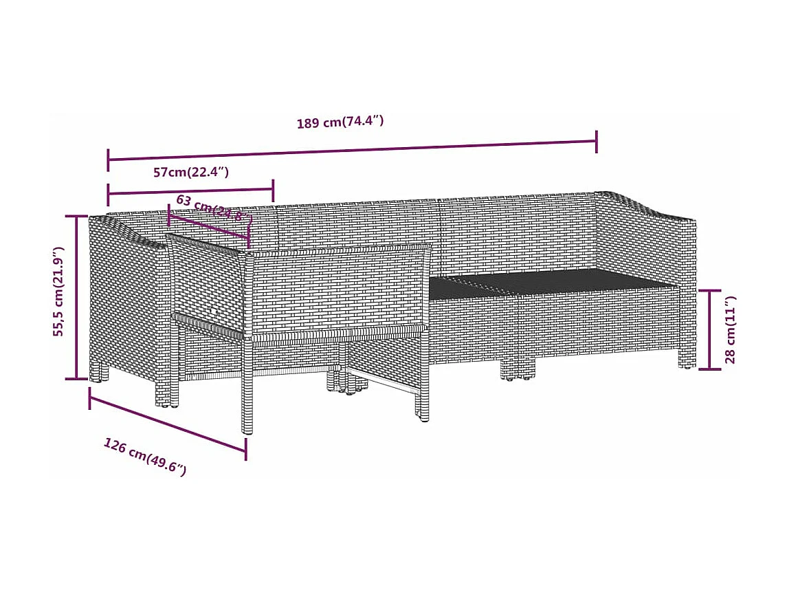 Salon de jardin meuble résine grise 189 x 126 x 55.5 cm 02_0016154