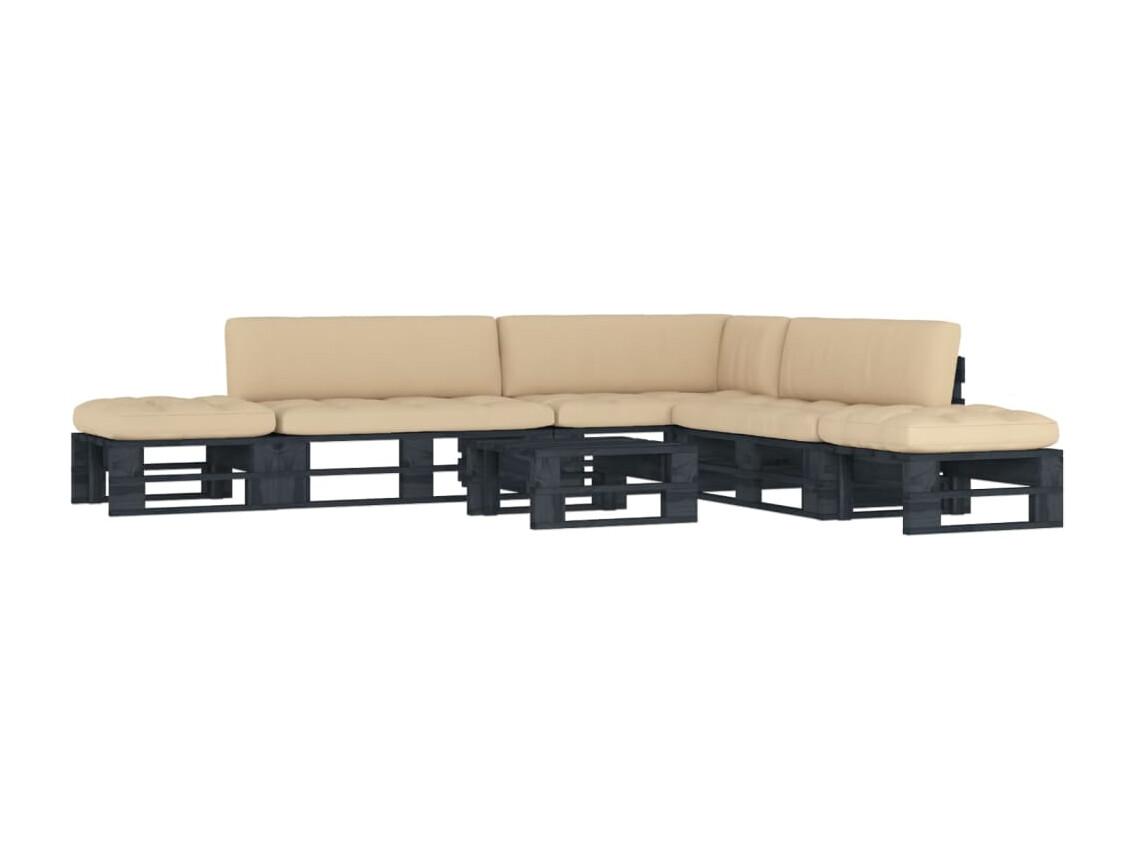 Salon de jardin palette 6 pièces avec coussins pin imprégné de noir