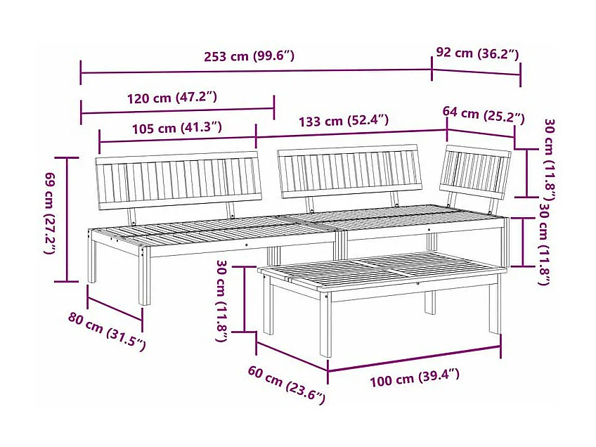Salon palette de jardin 3 pcs bois d'acacia massif