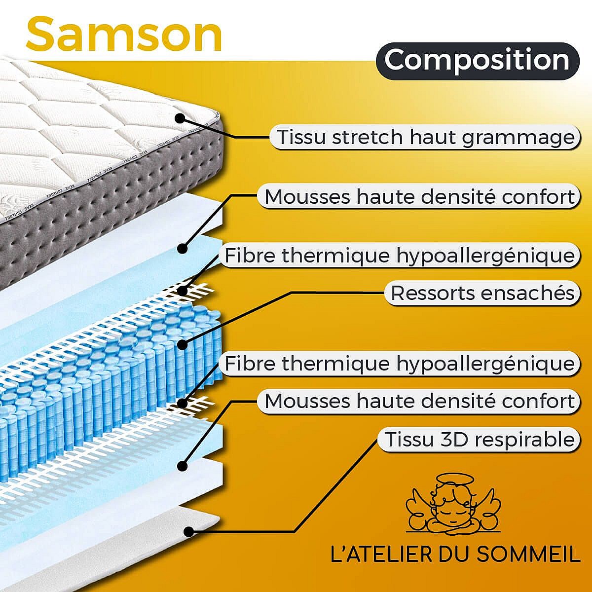 SAMSON - Matelas 160x200 cm Ressorts ensachés Soutien ferme Ep.24cm