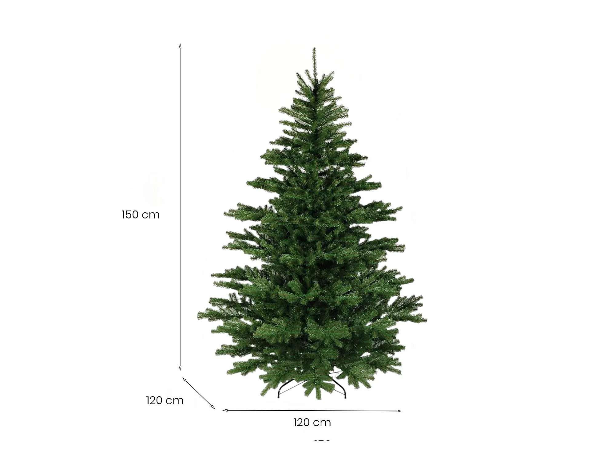 Sapin de Noël 150 cm Frosty, Pin artificiel, Arbre à effet réel, Sapin de Noël, 120x120 h150 cm, Vert