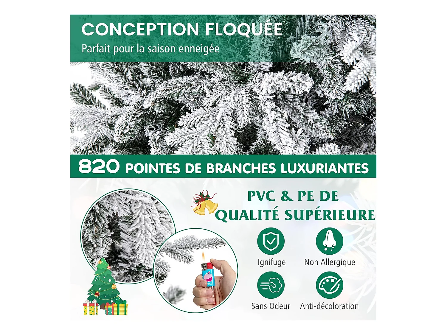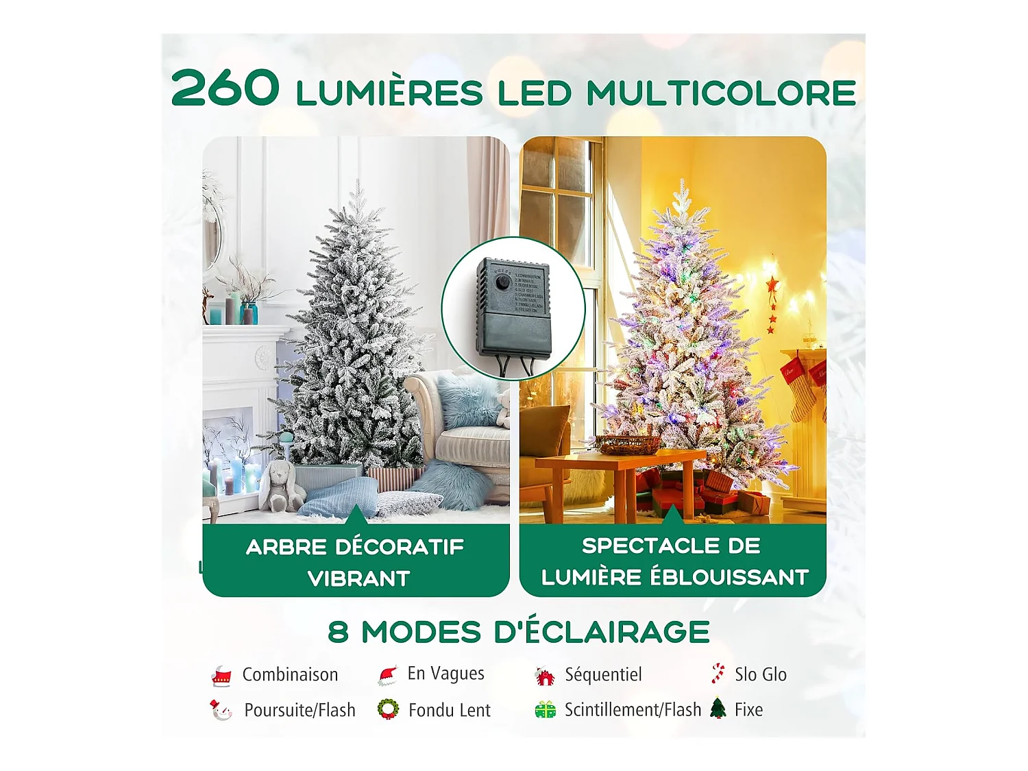 Sapin de noël 186 cm, 8 modes d'eclairage, led multicolores, 820 branches articulées