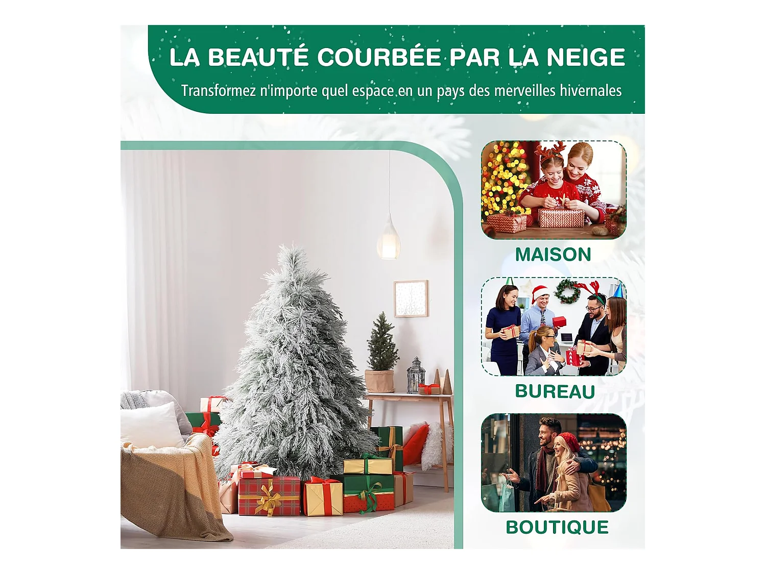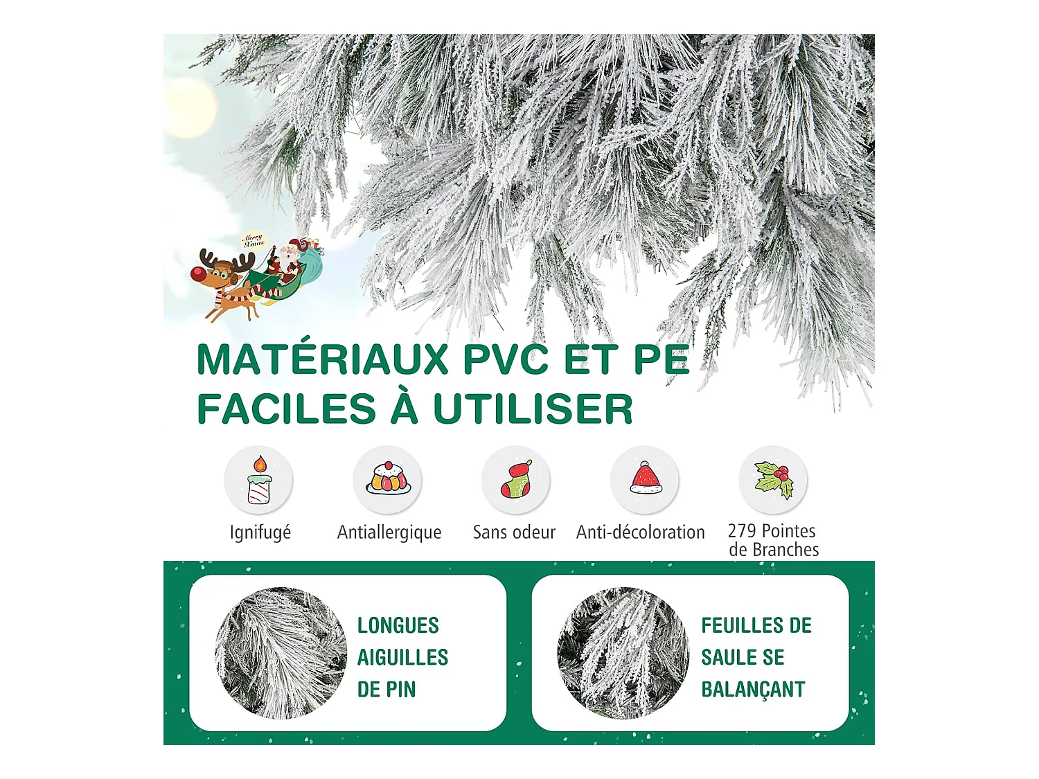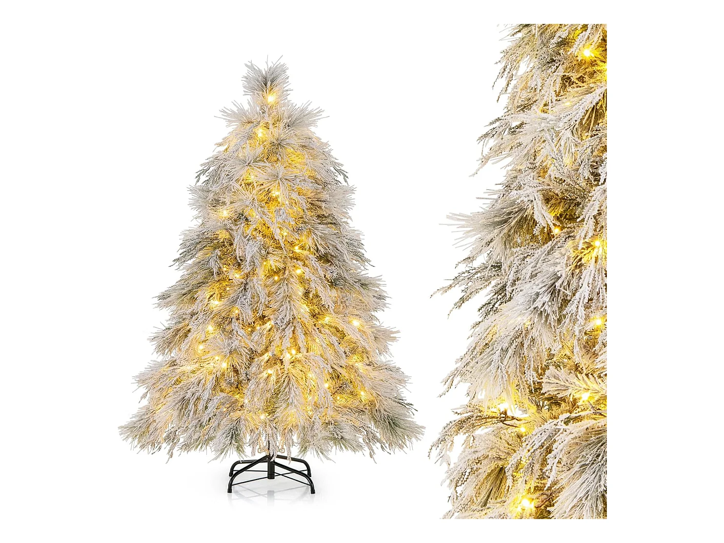 Sapin de Noël artificiel aspect enneigé Ø 60 x 135H cm 267 branches épines imitation Nordmann grand réalisme