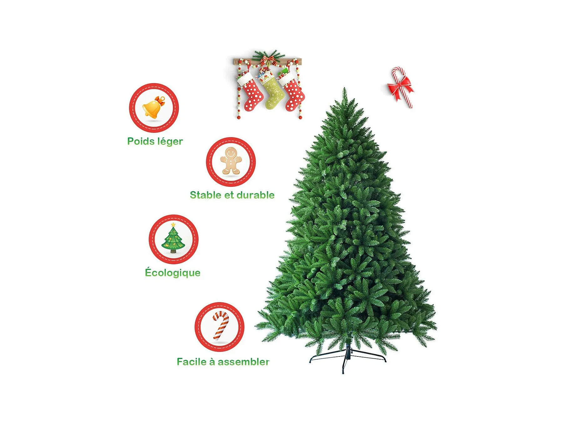 Sapin de noël artificiel 225cm 1968 branches, matériel pvc arbre de noël avec socle