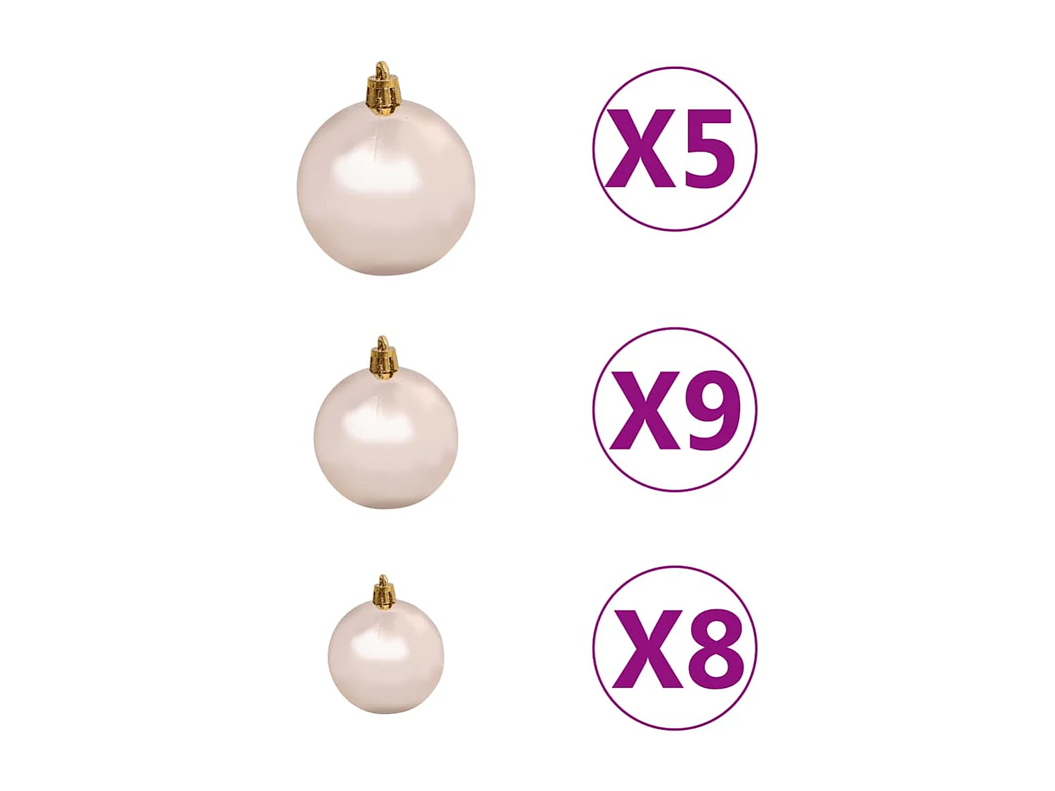 Demi-arbre de Noël artificiel pré-éclairé et boules blanc 120cm
