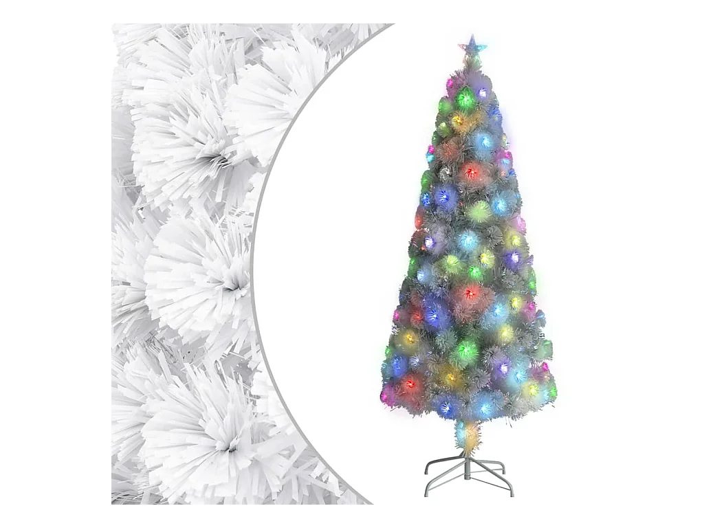 Arbre de Noël artificiel pré-éclairé blanc 210 cm fibre optique