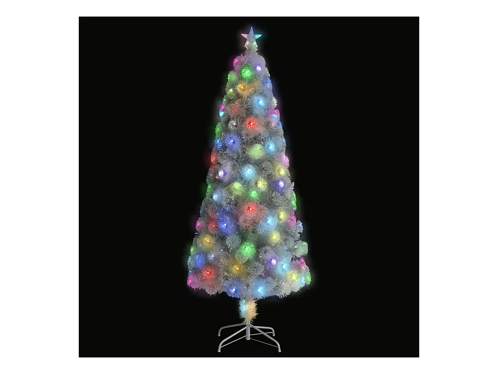 Arbre de Noël artificiel pré-éclairé blanc 150 cm fibre optique