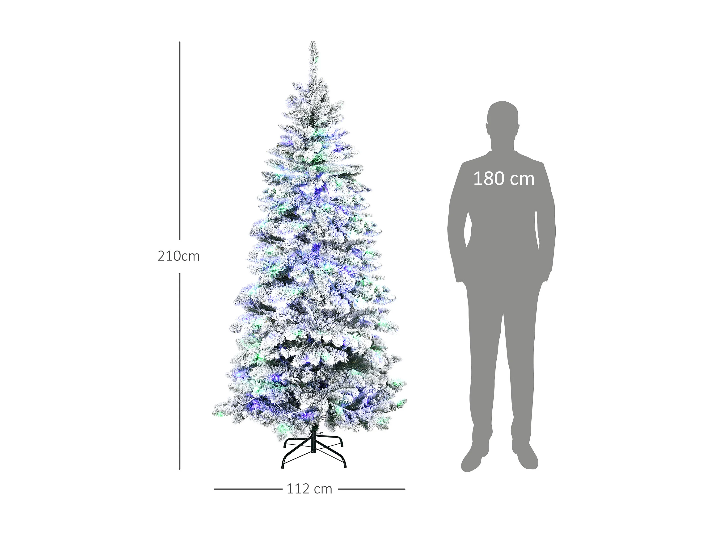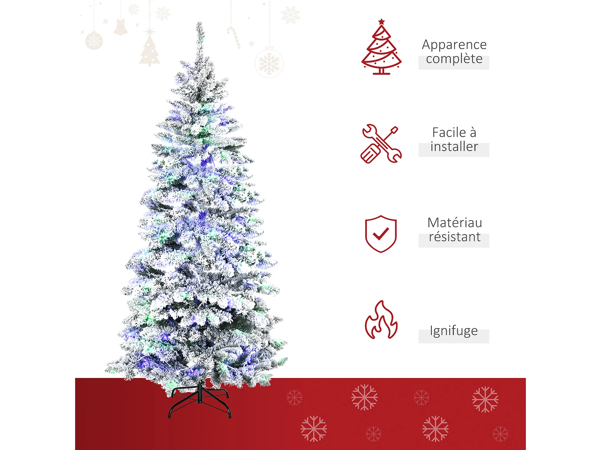 Sapin de Noël artificiel enneigé lumineux LED x 250 multicolore Ø 112 x 210H cm 829 branches vert blanc