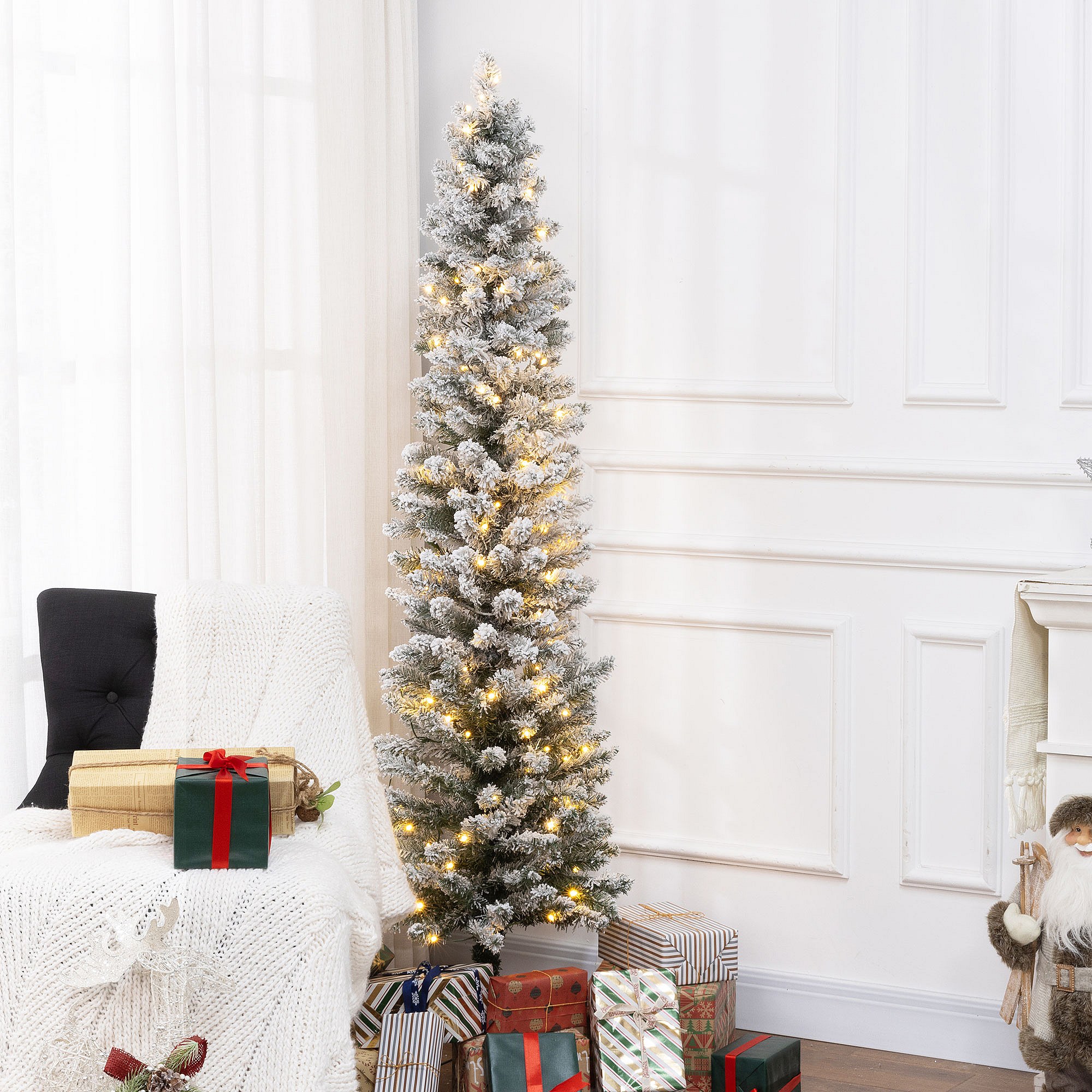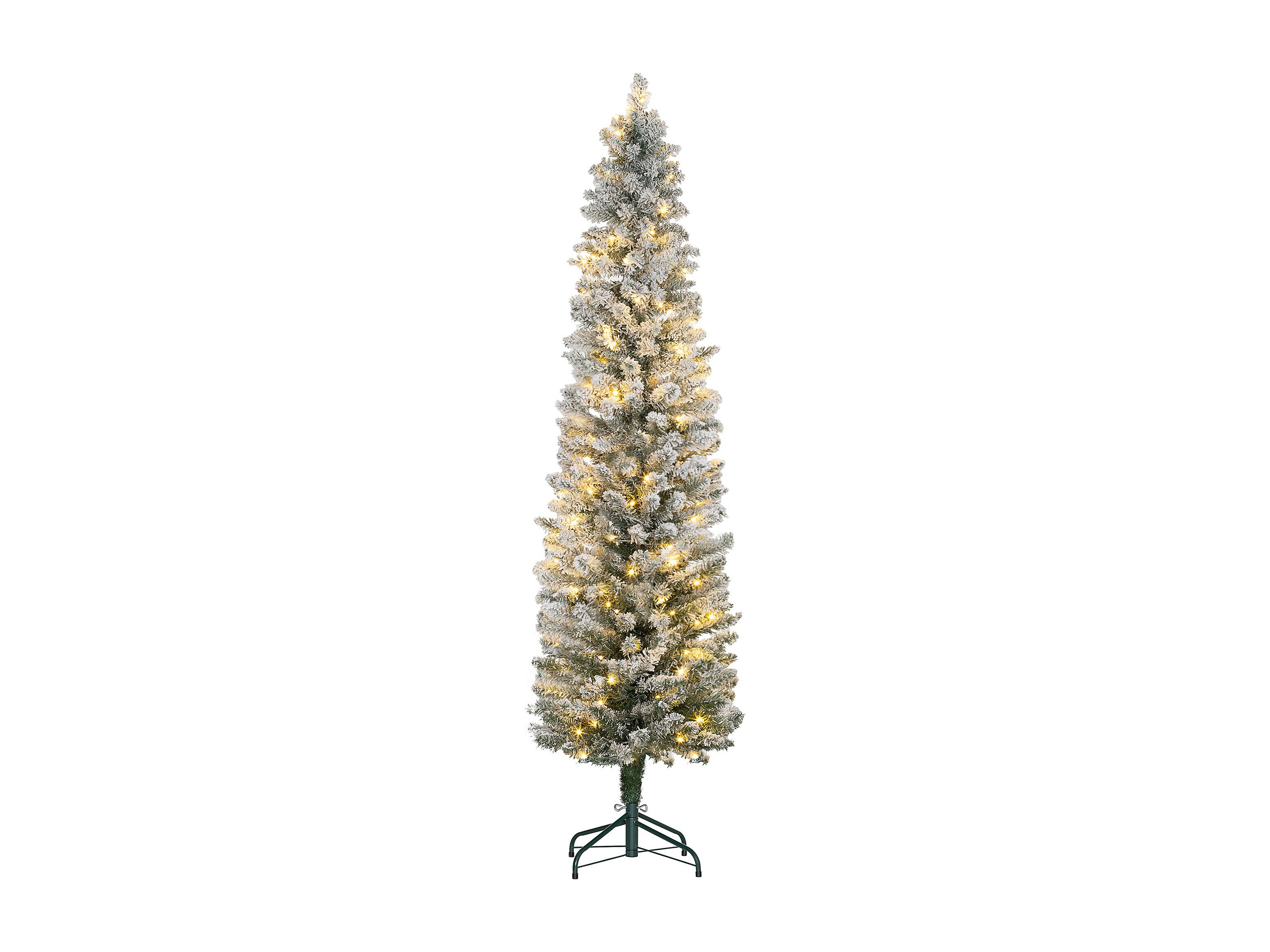 Sapin de Noël artificiel LED H.180 cm - sapin de Noël mince enneigé - 329 branches 150 LED blanc chaud