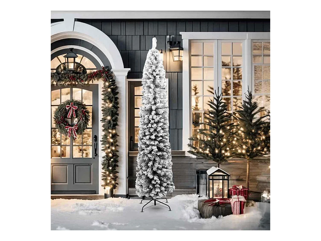 Sapin de Noël artificiel mince flocon de neige vert 210 cm PVC