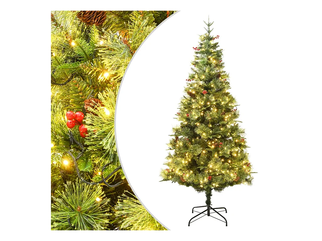 Sapin de Noël pré-éclairé et pommes de pin vert 150cm PVC et PE