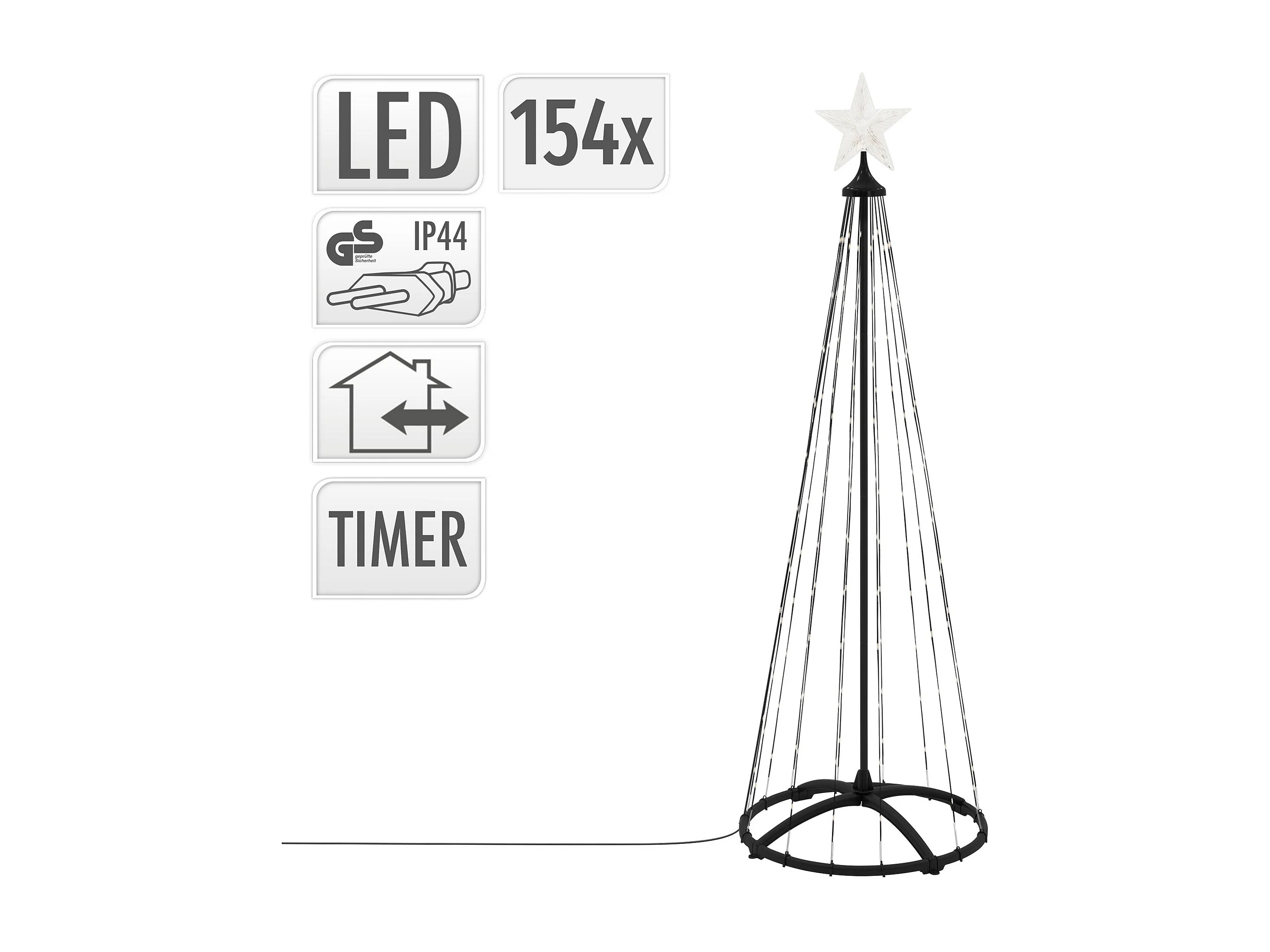 Sapin de noël extérieur 150cm éclairage à 154 LED blanc chaud dimmable structure décorative conique en métal avec minuterie 9 modes et télécommande