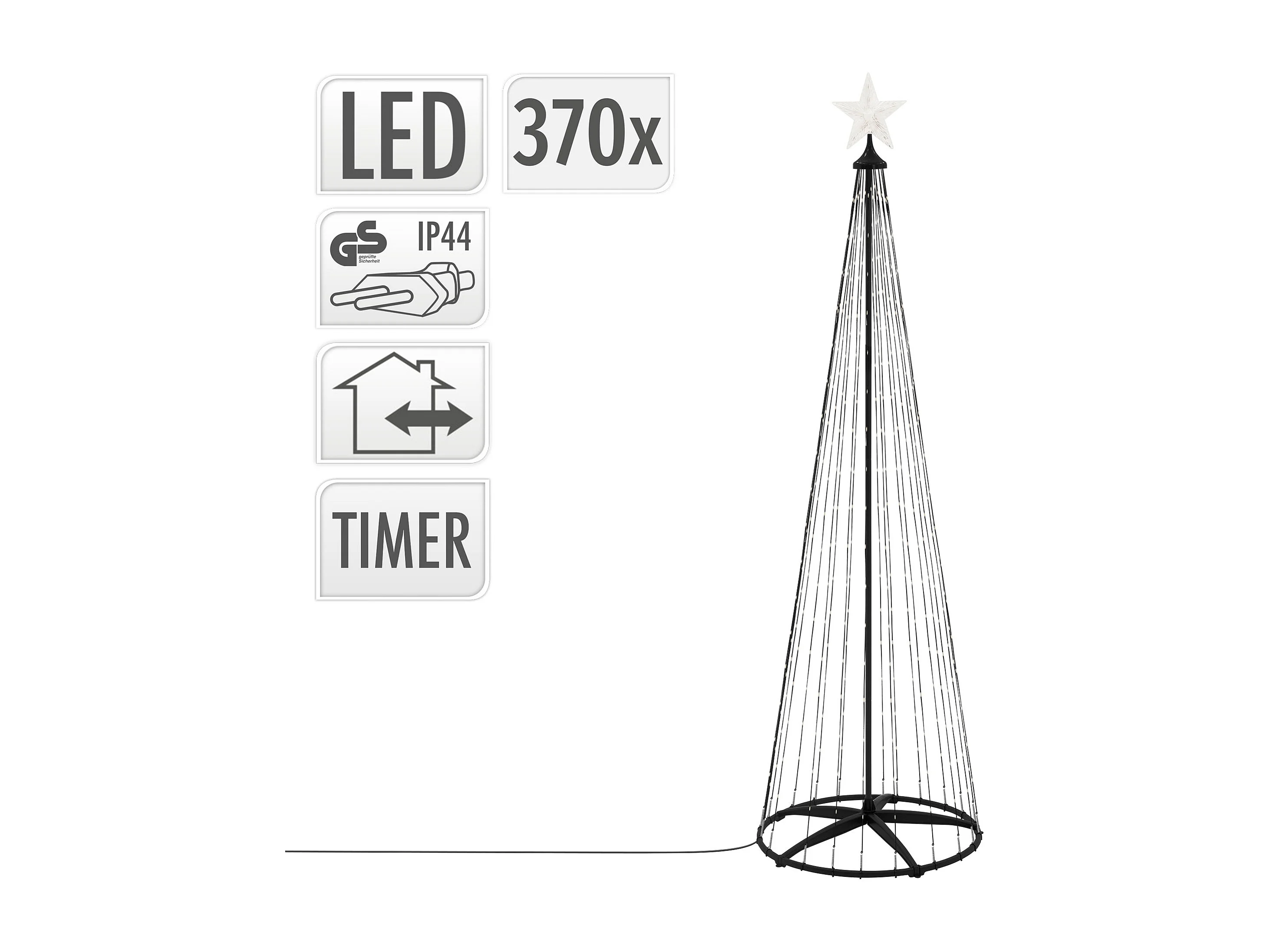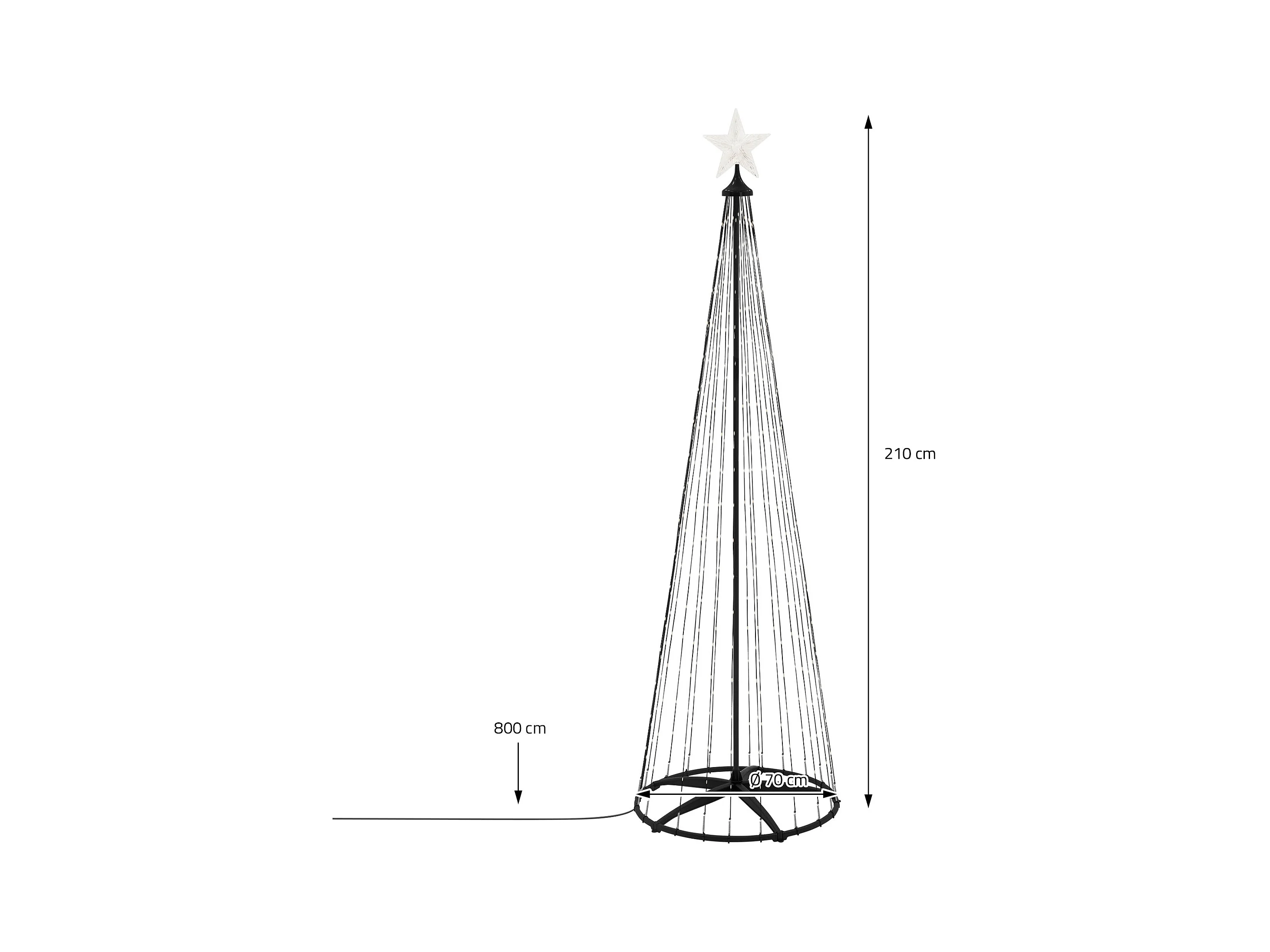 Sapin de noël extérieur 210cm éclairage à 370 LED blanc chaud dimmable structure décorative conique en métal avec minuterie 9 modes et télécommande