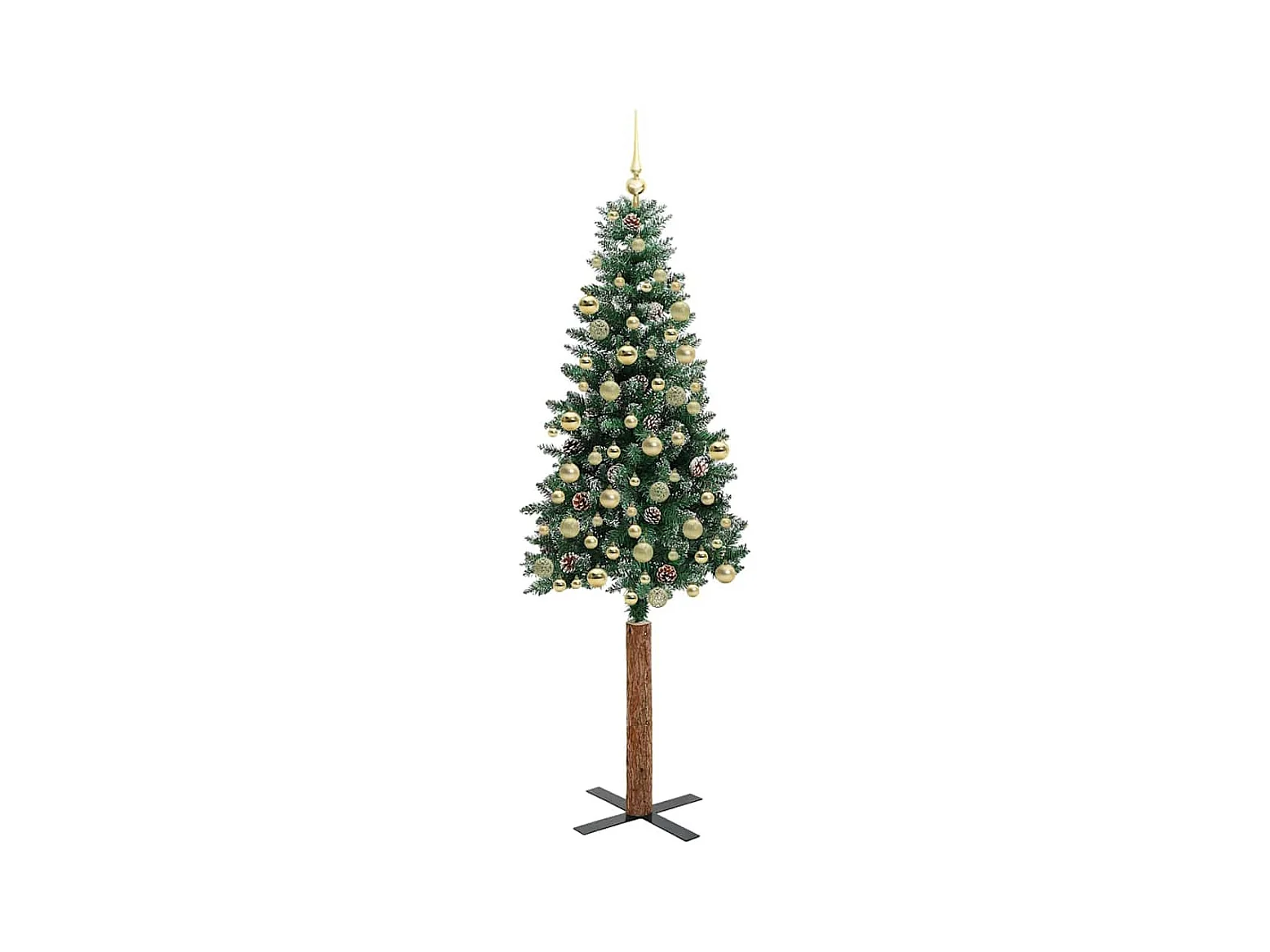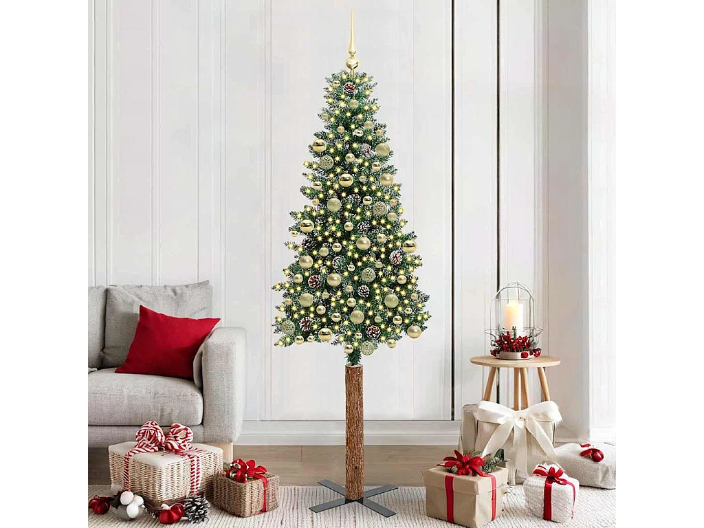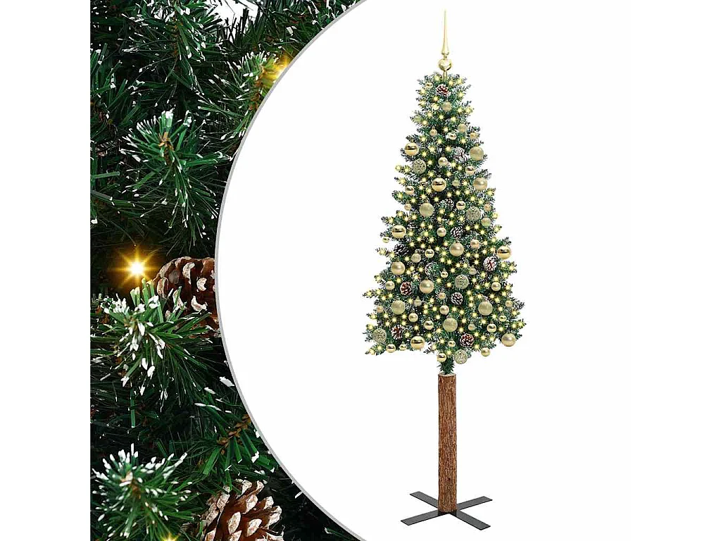 Sapin de Noël mince Vert 210 cm PVC et bois de pin massif