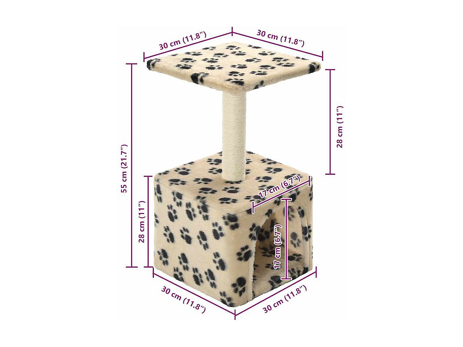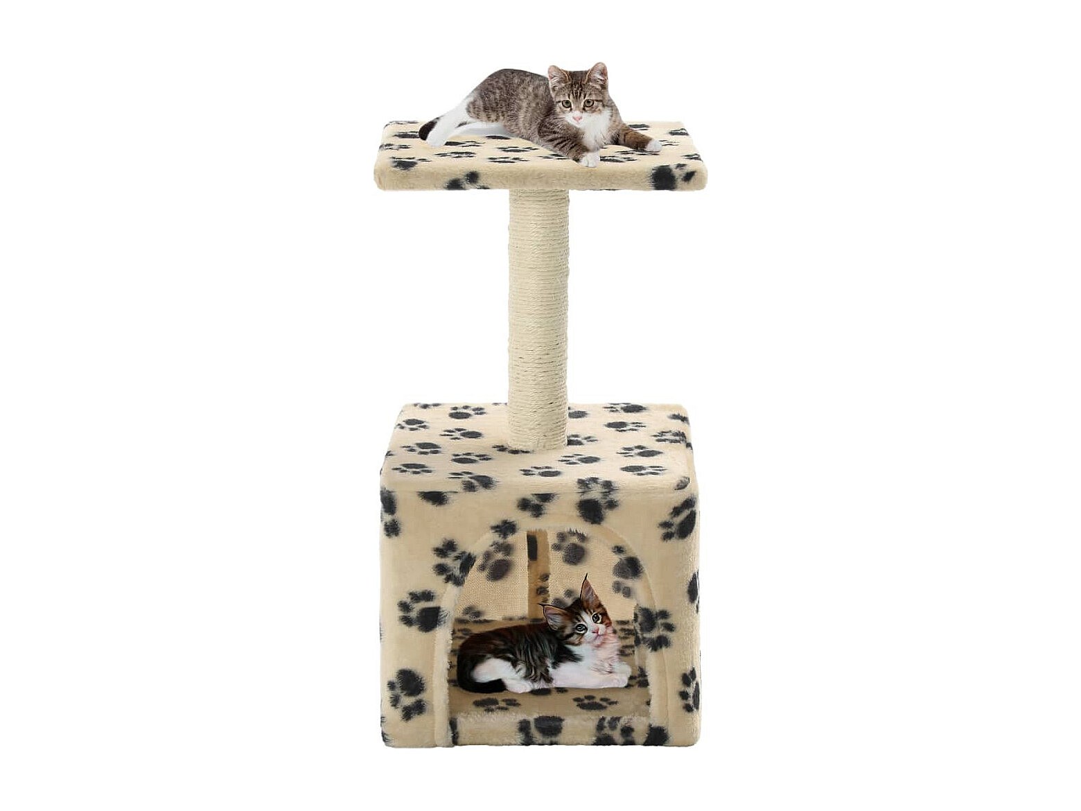 Arbre à chat avec griffoirs en sisal 55 cm Beige Motif de pattes OFR35307 BonneVie Meuble