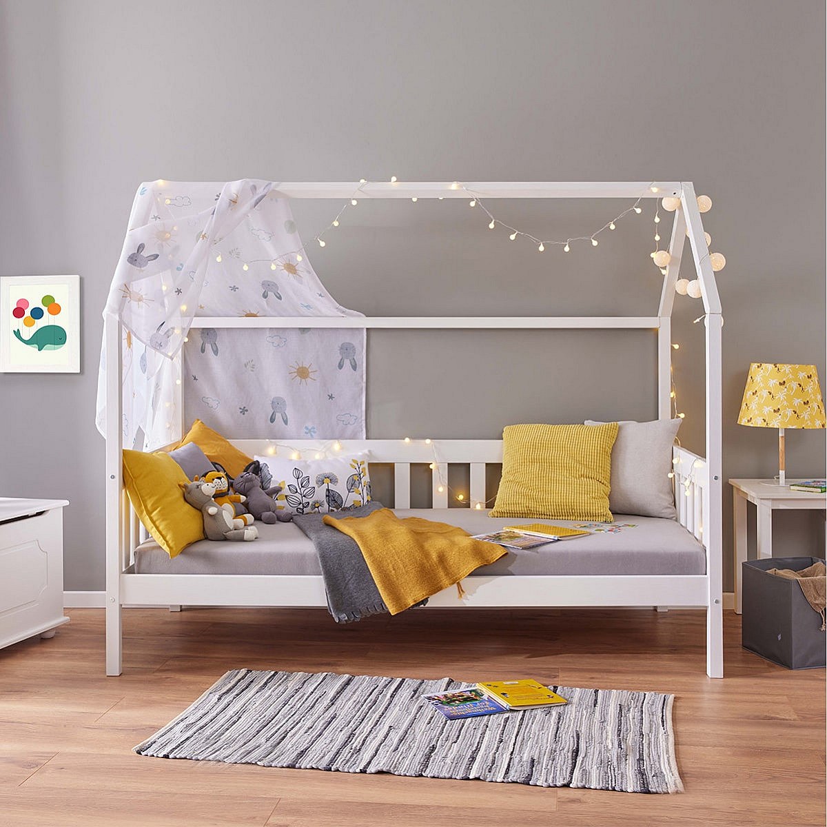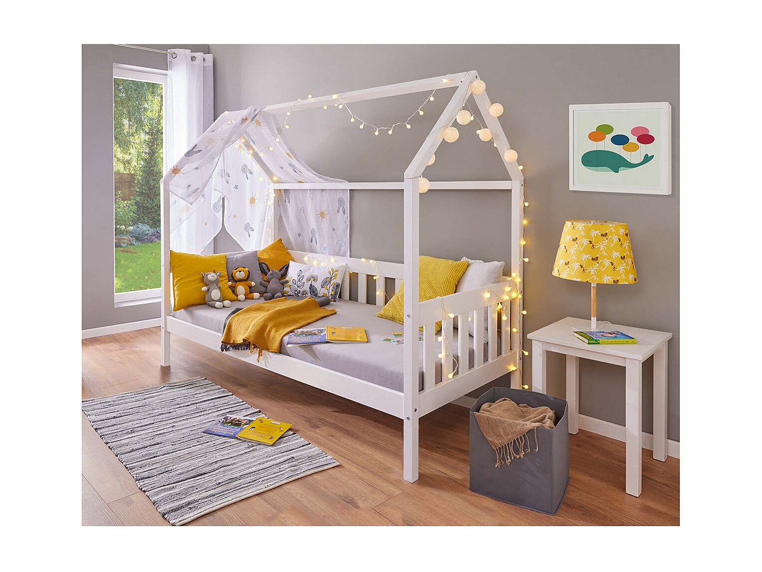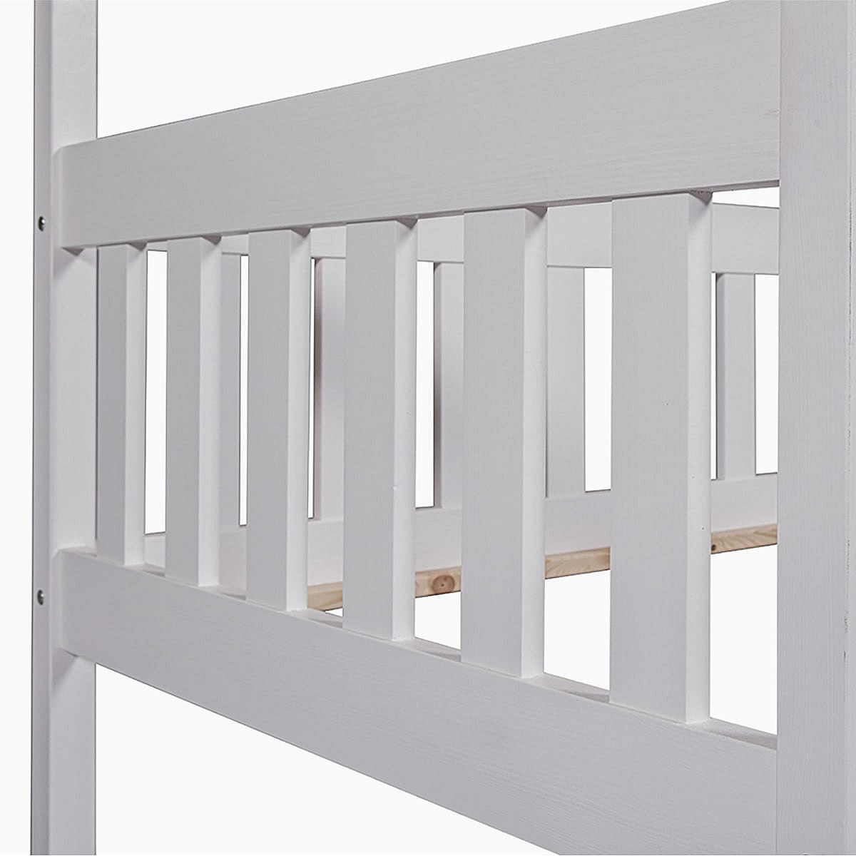 SARRY - Lit Cabane 90x200cm avec Barrières en Pin Massif Blanc
