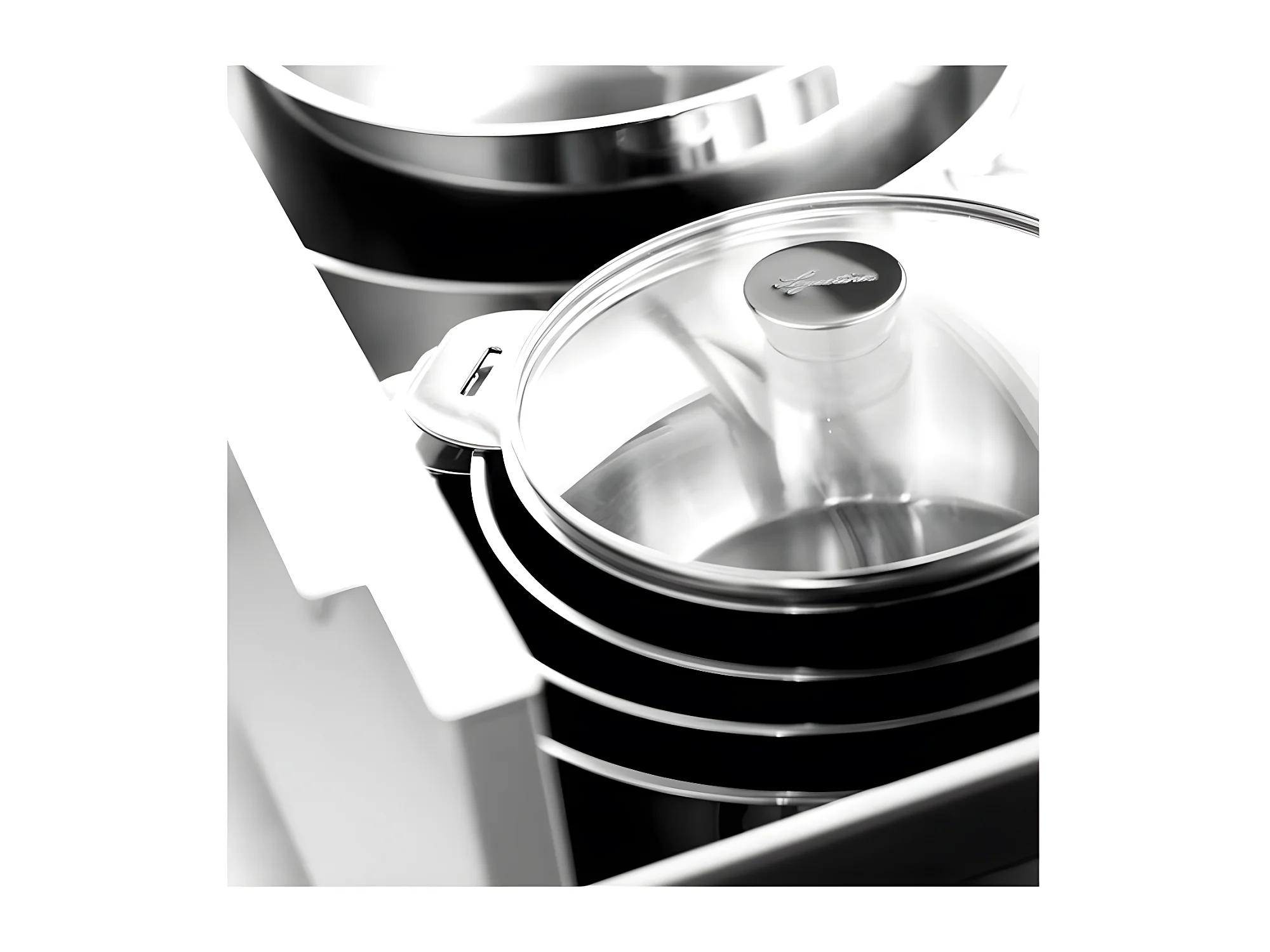 Série de 4 casseroles en inox et un manche amovible Evolution