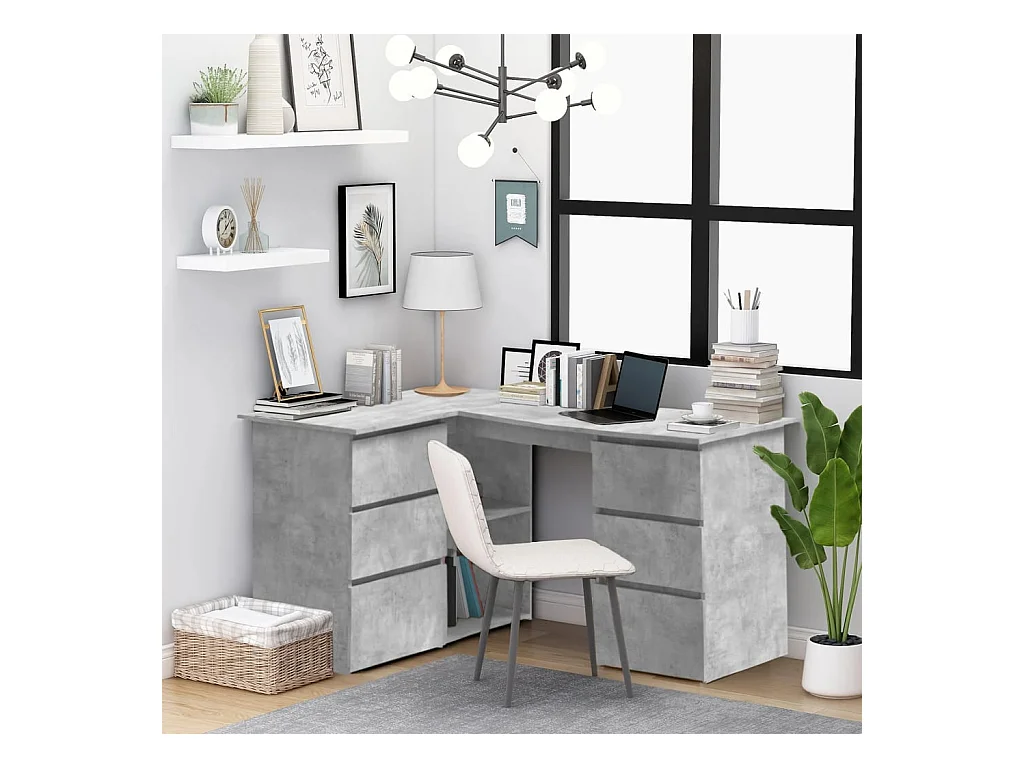Savukoski Bureau d'angle Gris béton 145x100x76 cm Bois d'ingénierie