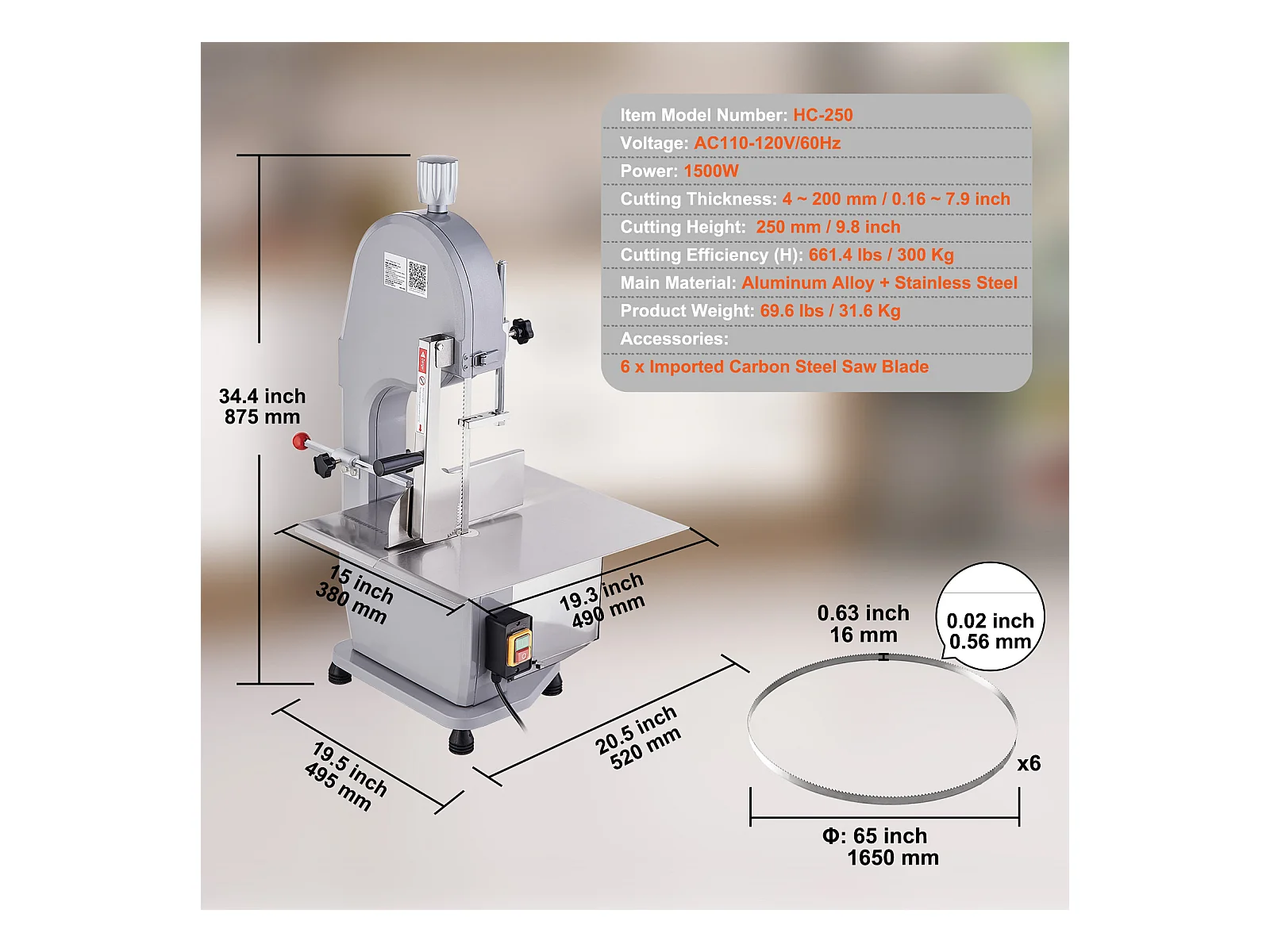 Scie à Ruban Électrique Commerciale pour Viande SucceBuy 1500 W, Machine à Scier les Os en Acier Inoxydable